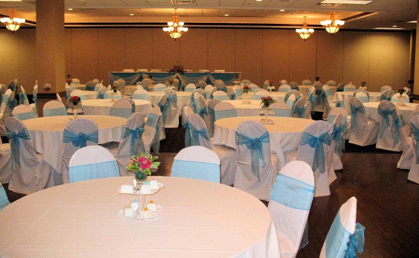 12,000 square feet of indoor event space 4,000 square feet of outdoor ceremony space Reception tables including round and banquet Banquet chairs Gathering area Event Coordinator on-site throughout your event Staging for head table, DJ, or live music Cocktail tables Private indoor bathrooms (wheelchair accessible) Indoor speaker system with wireless microphone A/V system with 6 projector screens for video and/or slideshow Bar service with staff members ready to serve your guests