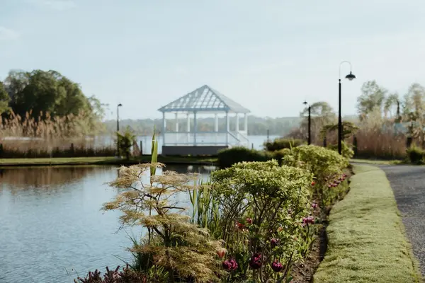 Our estate features beautiful ballrooms and suites of all sizes including al fresco spaces, an ideal setting for events of any type or size. Create your dream wedding amidst seven acres of lush gardens, fountains, bridges, waterfalls and gazebos. For wedding ceremonies, we have our ceremony pavilion as well as two outdoor spaces situated throughout our gardens, one featuring a gazebo and the other a cobblestone runway. The newly renovated Camelot and Contessa Ballrooms and Garden Room offer expansive views of the waterfront gardens and beautiful sunsets through floor to ceiling windows.