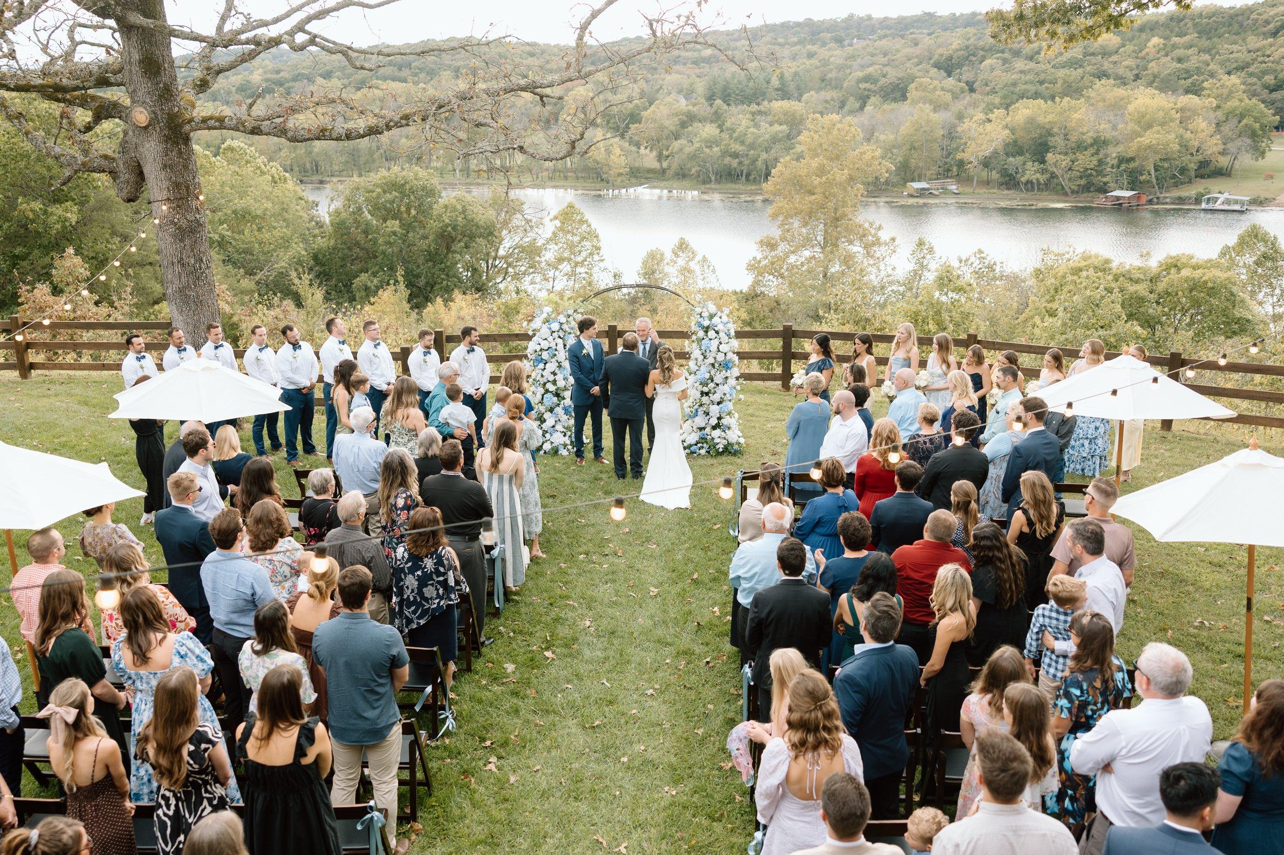 Enchanting & dreamy. That about sums it up. Surrounded by the timeless beauty of nature, it doesn’t get much better than this. The panoramic ridge top views of Lake Taneycomo, our Amish-built timber frame pavilion, expansive stained/stamped concrete patio, lush lawn ceremony space, fire pit, vintage string lights, & indoor amenities provide an extraordinary place to gather. As the sun sets across the water & the stars come out, your event will slide right into magical.