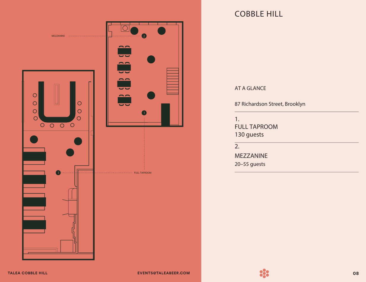 With high ceilings, airy interiors, and a spacious mezzanine featuring a private bar, this taproom provides a beautiful, flexible space for your special day. Whether you're planning a cozy ceremony, a cocktail-style reception, or a pre-wedding welcome party, TALEA Cobble Hill’s inviting ambiance and thoughtful design set the stage. Enjoy exclusive access to our curated beer selection, along with wines and light fare, all served in a space that feels like your own. With optional outdoor seating and a versatile layout, TALEA Cobble Hill is a hidden gem for couples looking to celebrate in laid-back luxury.
