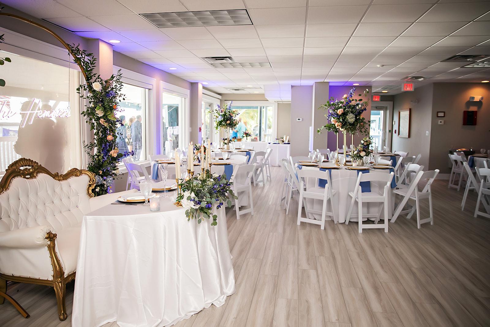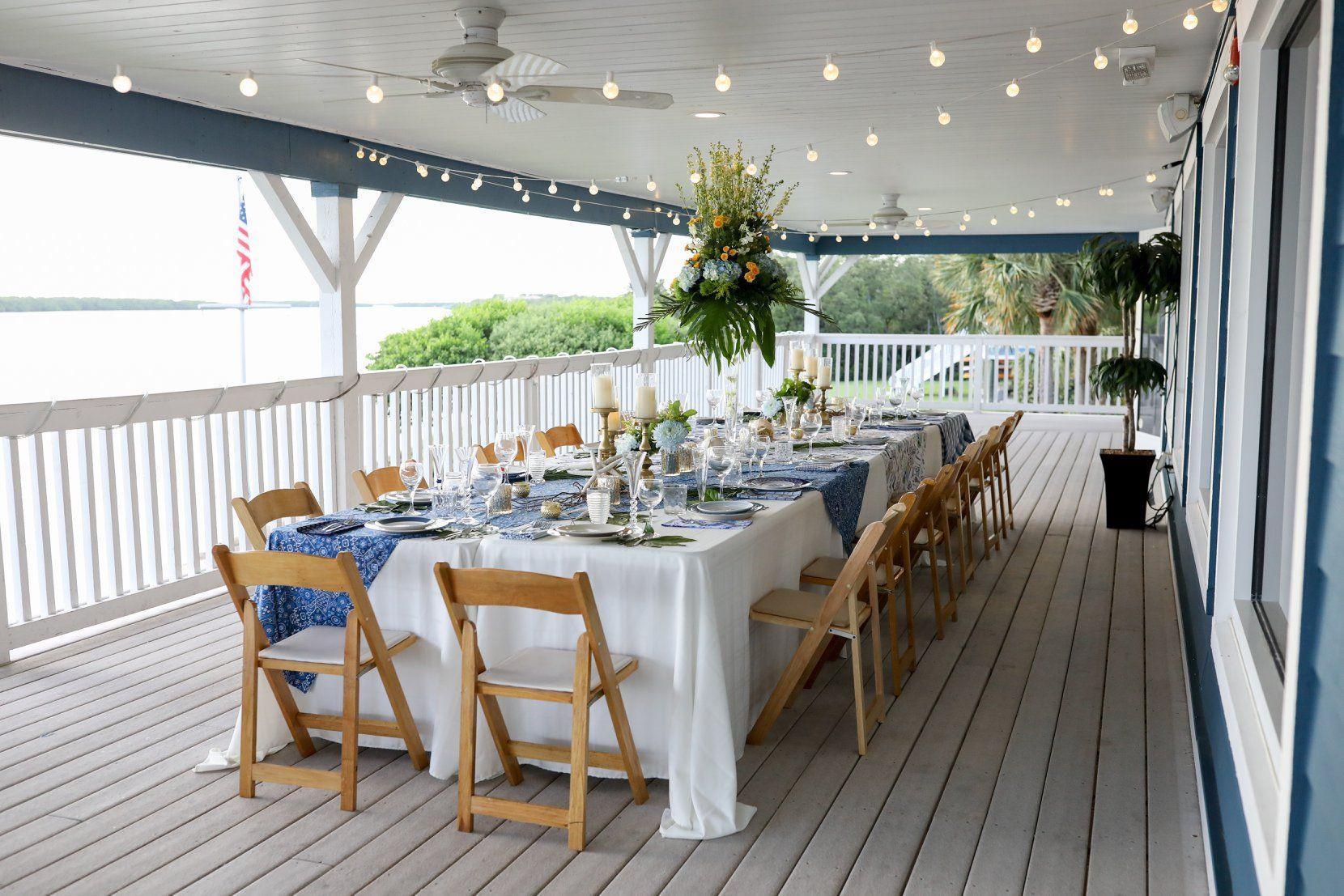 Use of designated areas of the facility for ceremony & reception Indoor & outdoor options 1,900 sq ft veranda deck overlooking the bay Prep room available for wedding party Onsite parking Tables and chairs (contact us for a current inventory of what is available)