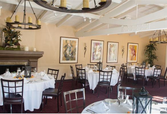 This private section of Tarpy’s includes a spacious indoor dining room, a covered alcove housing the bar and an additional outdoor space that can be used for dancing or al fresco dining. The Library is perfect for sit-down parties of up to 80 guests and cocktail parties or standing receptions for up to 120. When the outdoor space is used for dining, full seated capacity grows to 118. Start your event with cocktails and appetizers on the patio and retreat to the warmth of the fire-lit Library for your meal.