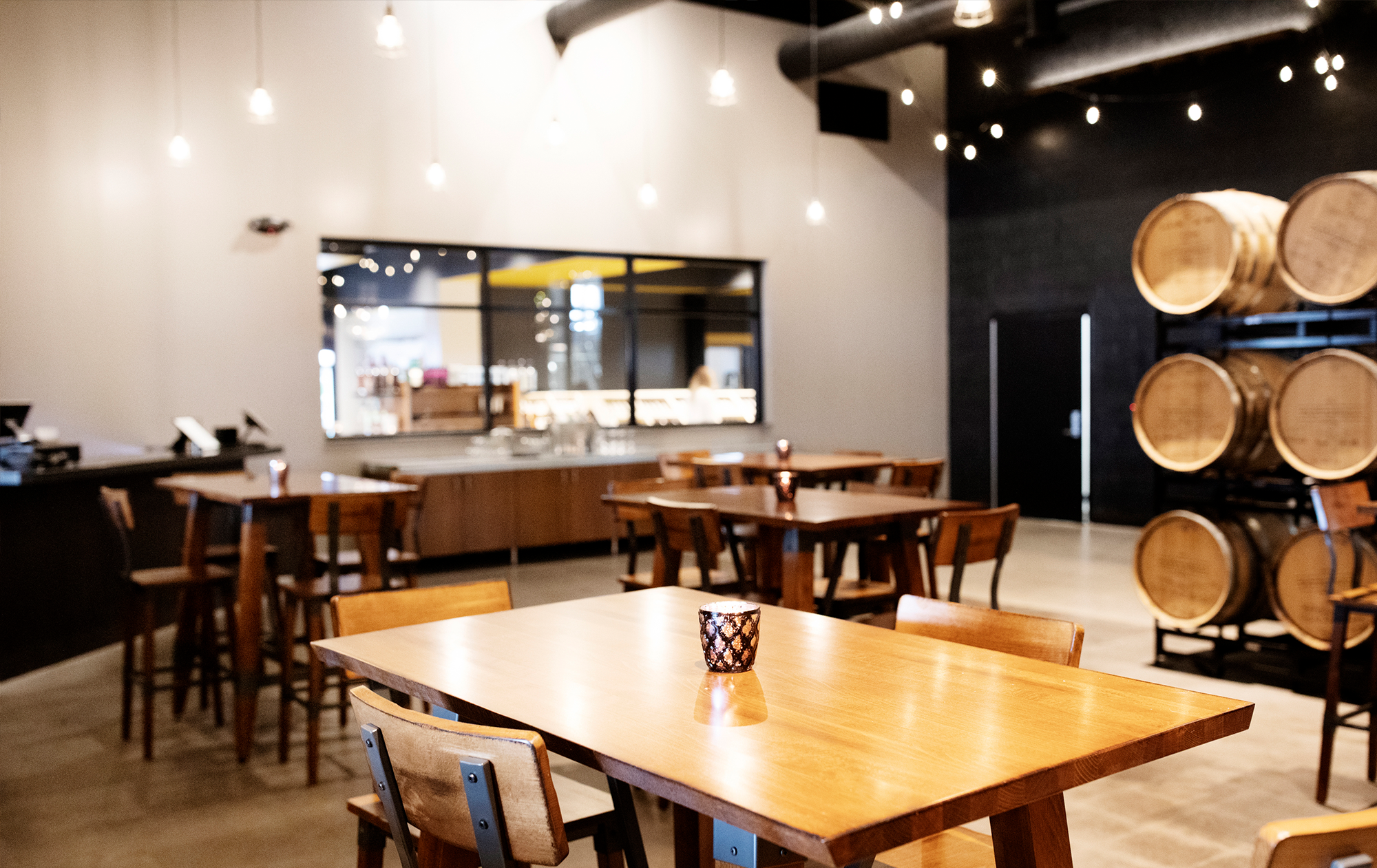 - Outdoor patio with yard games - In-house sound system - Chandelier lighting - Private craft bar - Views of the distillery