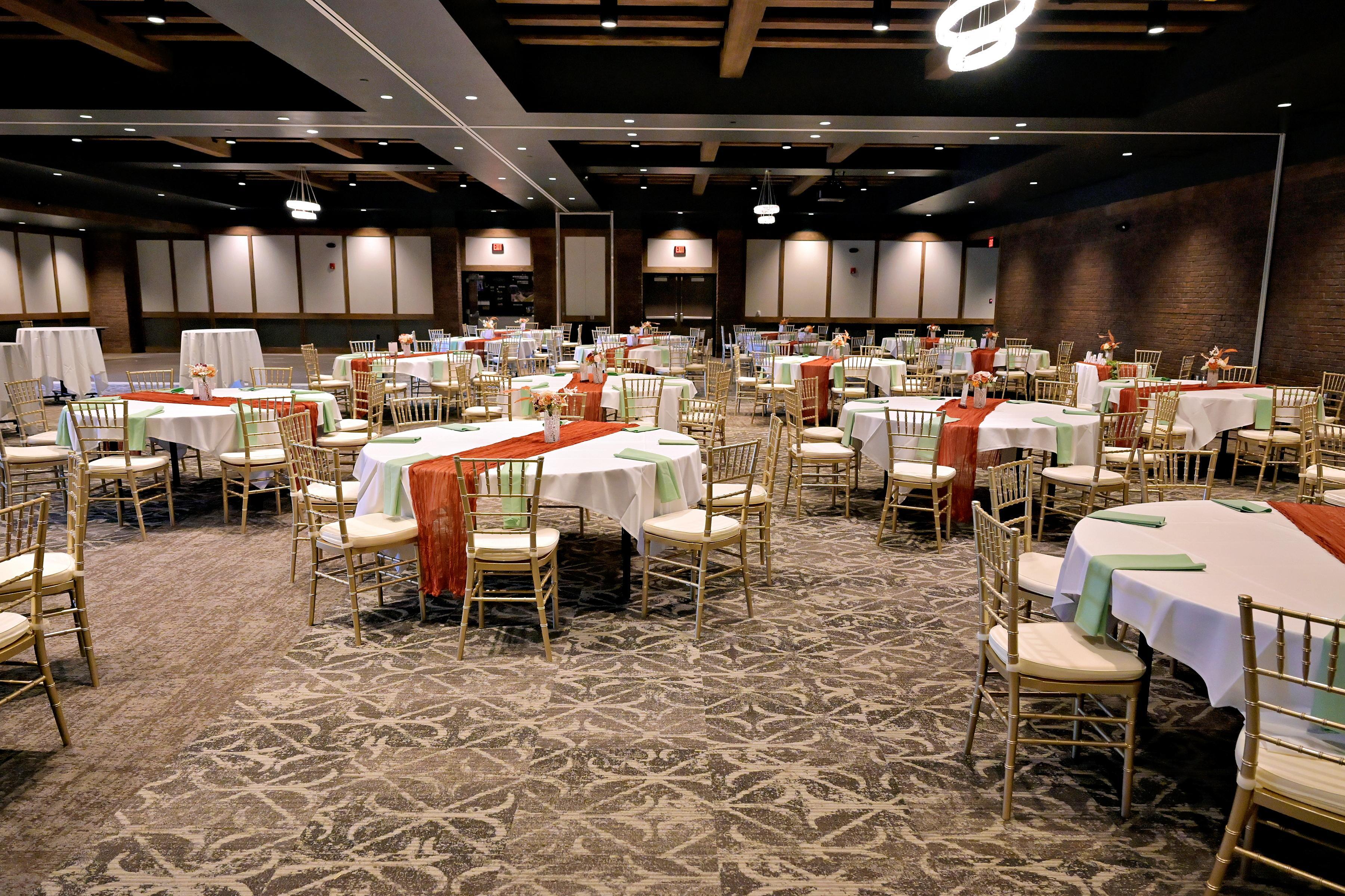With gorgeous lighting and surrounded by brick and reclaimed barn wood, the Great Hall seats up to 420. Our largest and most versatile event space, the Great Hall is supported by the Pre-Function Lobby and can be divided into separate sections to accommodate breakout sessions or multiple functions. As two rooms, each can seat up to 200 — as four rooms, each can seat up to 100.