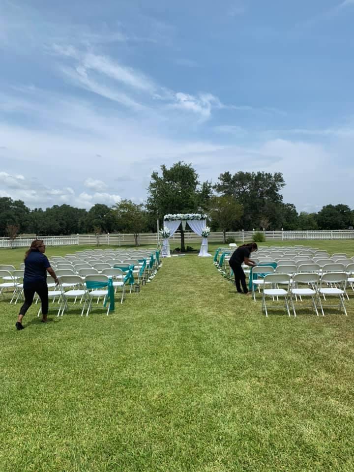 Bose sound system - Outdoor speakers - Portable microphone and speaker - Bar area with sink - Refrigerator - Deep freezer for ice - Covered porch - Fenced-in yard and patio - Space for outdoor tent - Parking lot - Use of outdoor kitchen - 20- 30"x72" Rectangular Tables - 25-72" Round Tables - 15- 48" Round Tables - 400 White Folding Chairs - White tablecloths available for extra fee of $10 each