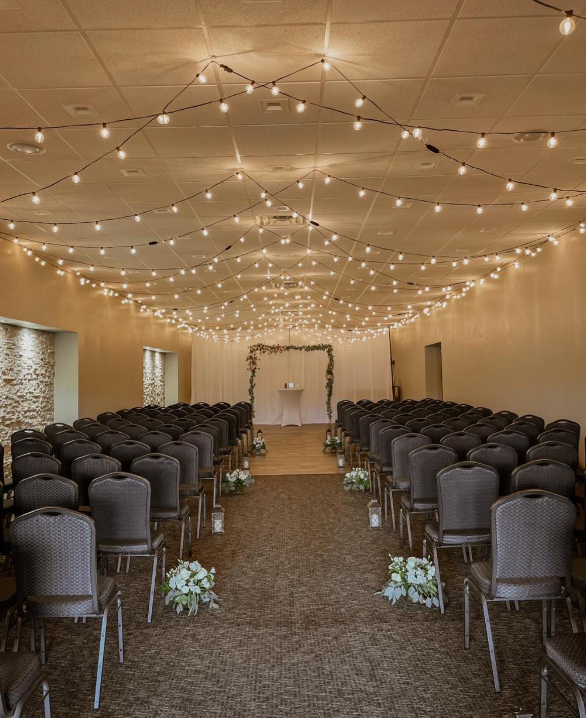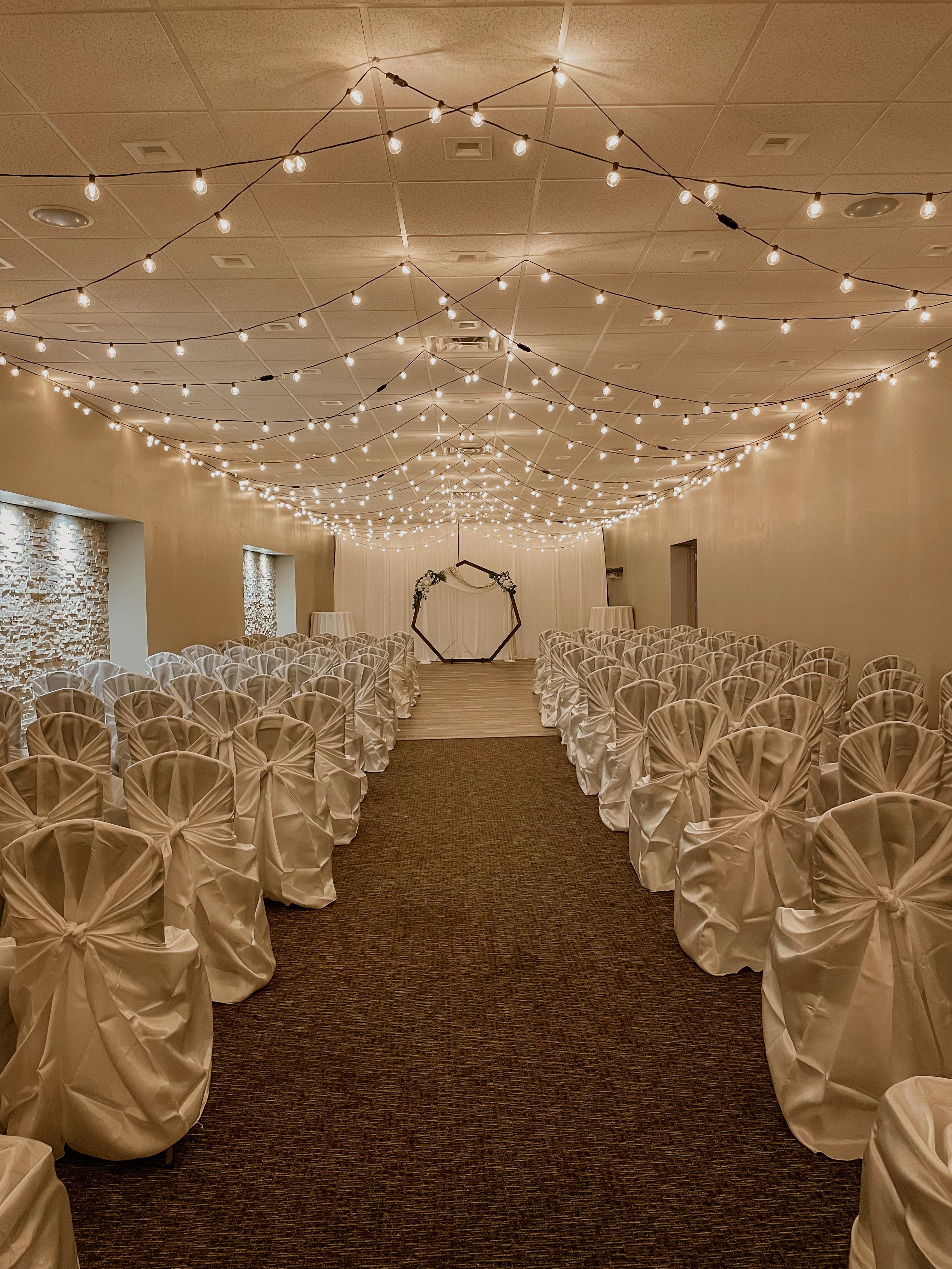 Ten Fifty Eight Event Center is a sophisticated wedding venue situated in Sandusky, Ohio. This venue features multiple event areas perfect for engagement parties, wedding showers, rehearsal dinners, ceremonies, and receptions. This venue has multiple areas that couples can make use of on the big day, including a bridal room, a ceremony room and large ballroom. The Encore Room, typically used for ceremonies, offers an inviting atmosphere for the "I do's" with string lights. The Ballroom is a spacious area with ample space for seating and a large dance floor. Sweethearts will work closely with event planner Bella. She can provide the couple with everything they need to host a successful event. Included in the facility package is set up & clean up, all dinnerware and barware, tables, chairs, linens, and lighting. Catering will also be provided in-house, served in a buffet style with the help of the venue's servers. The couple's special day ends with a sparkler send-off.