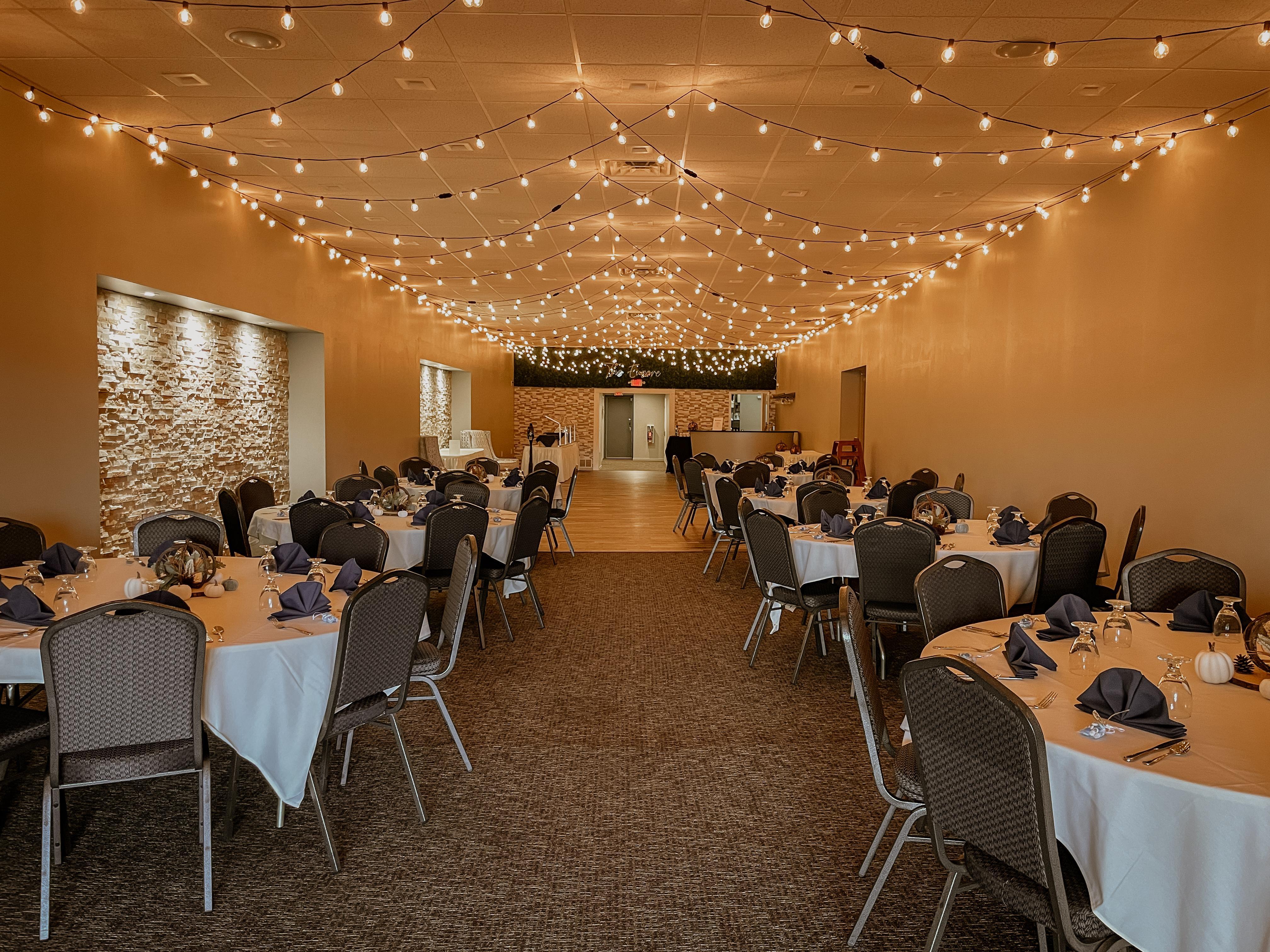 The bistro lighting in this room creates a casual, intimate atmosphere that compliments any type of event.