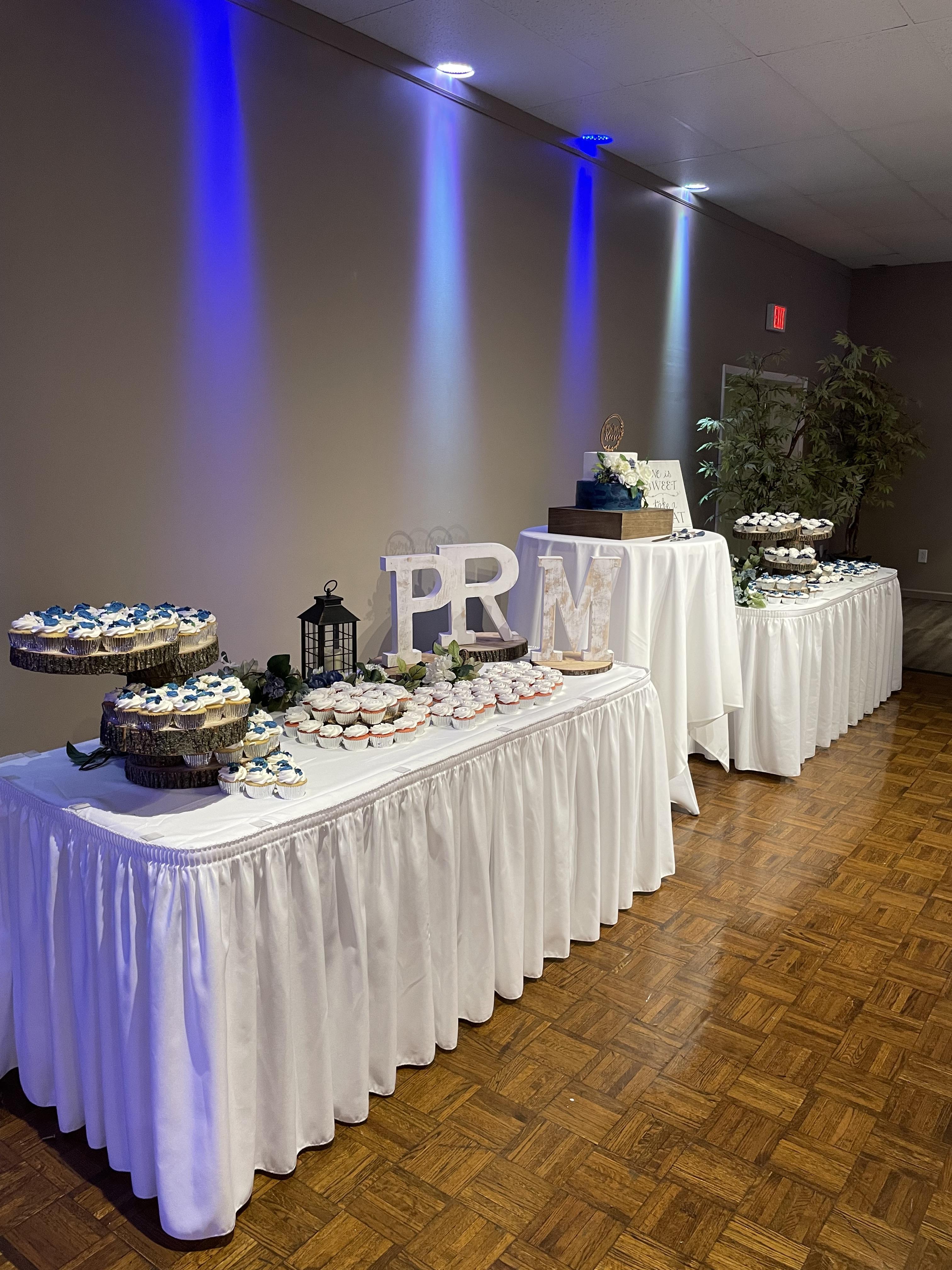 The ballroom contains a huge hardwood dance floor! On opposite ends of the ballroom, there is a large DJ/band stage and a head table stage for your bridal party. This room also has a large bar service area and we are licensed to serve beer, wine and liquor. A coffee cart and a photobooth also compliment this area. Certainly last but not least, a state of the art full room lighting system creates the ambiance for whatever type of event you are looking to host.