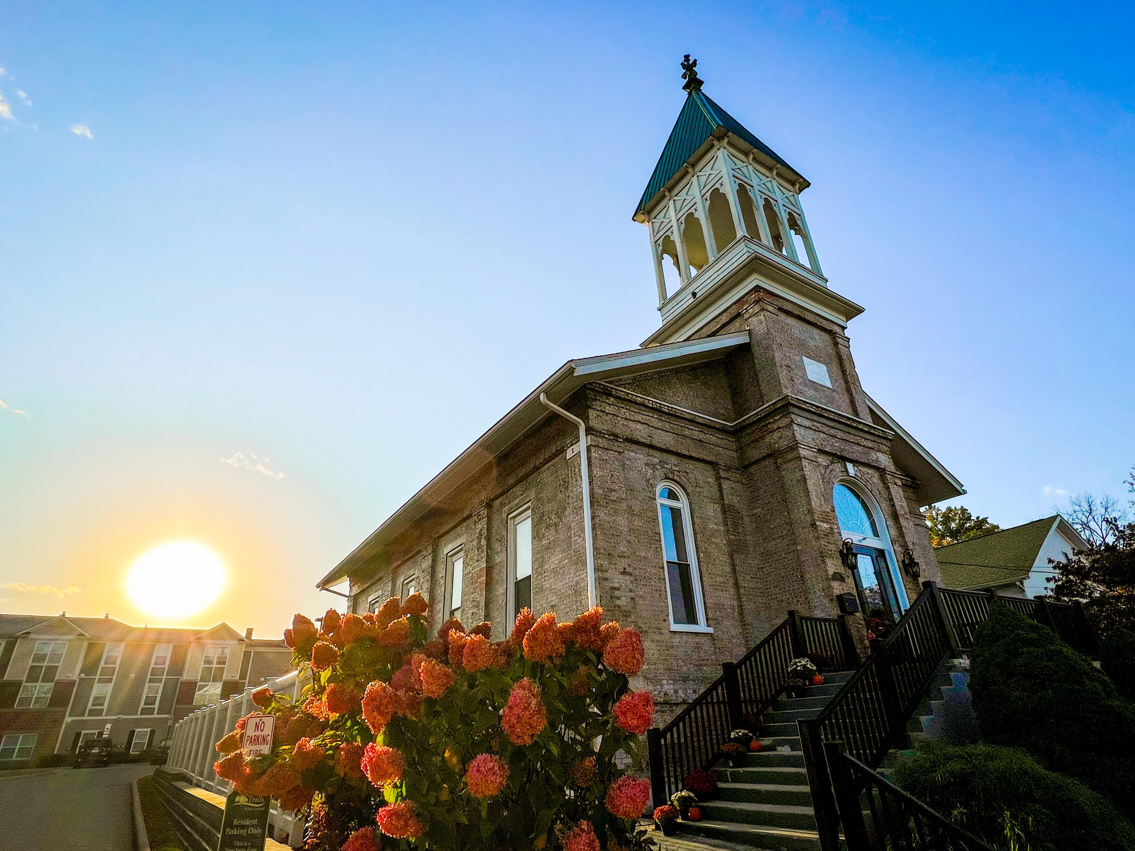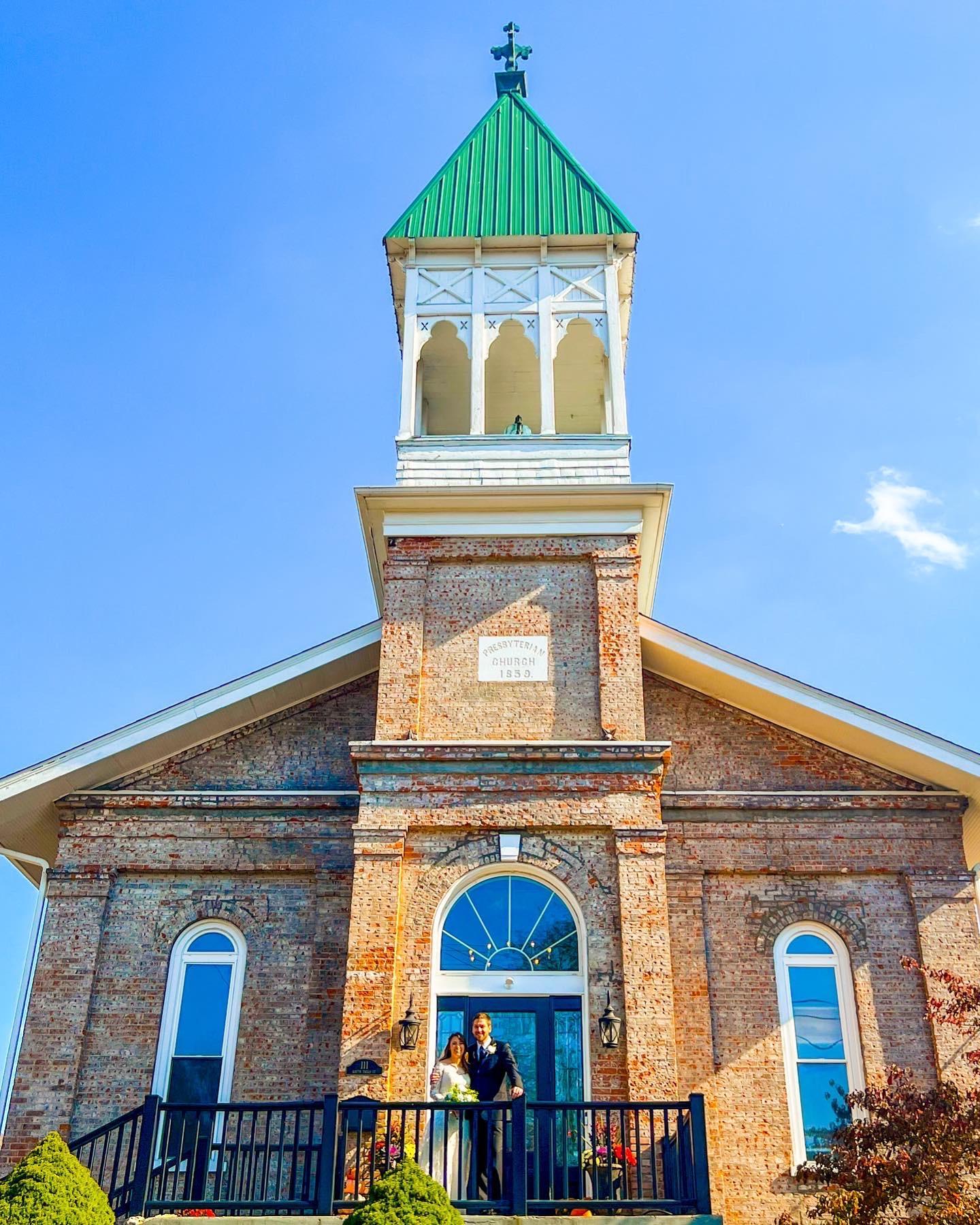 The 1859 is a wedding venue situated in the heart of Historic, Loveland, Ohio. Originally constructed in 1859 from handmade bricks, this timeless chapel has laid witness to countless partners taking their first steps as a married couple. The 1859 is ideal for both large and smaller, more intimate weddings, hosting up to 90 guests. As you enter through the chapel’s large 8 ft. door, couples and guests are met by a stunning and welcoming room. Featuring inspiring 12 ft. glass windows, a classic bell tower, and wooden flooring, this venue is an elegant space for those seeking to get hitched in a loving and quaint environment.