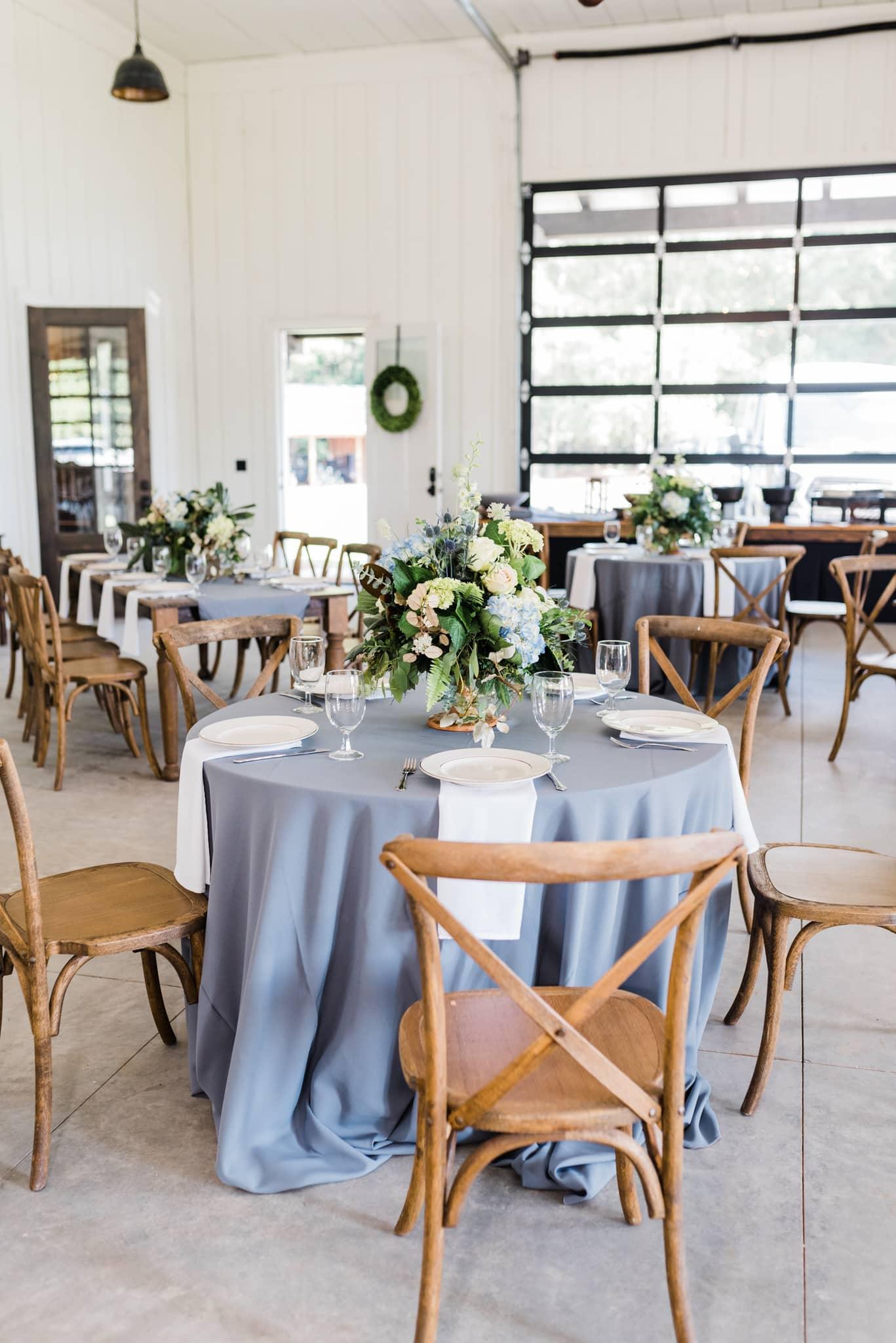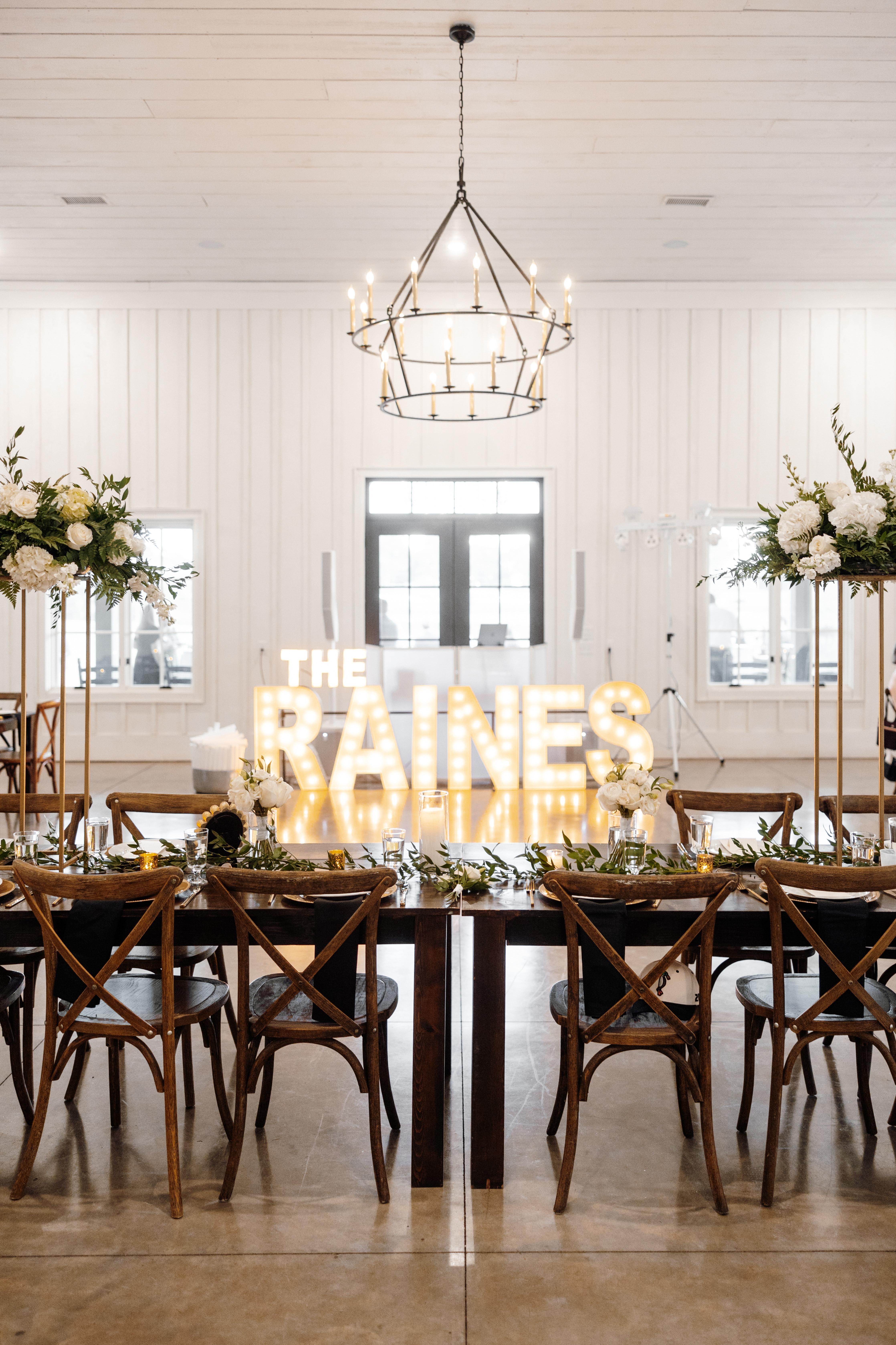 Surrounded by country elegance and beautiful scenery, The Barn features a vast open interior with a neutral, light palette and tall ceilings to keep the room delightful and airy. An abundance of natural light pours through the tall windows and modern garage style doors. The Sixty-Two is yours to customize. Whether you love rustic, simple, or trendy, our space is built to accommodate your unique personality. Step outside and enjoy the modern-rustic gathering area. Designed with the modern farmhouse in mind, the venue features clean white siding, a classic tin roof, and dark beautiful trim. The large covered front porch is the perfect place to set up bar with plenty of room for guests to gather.