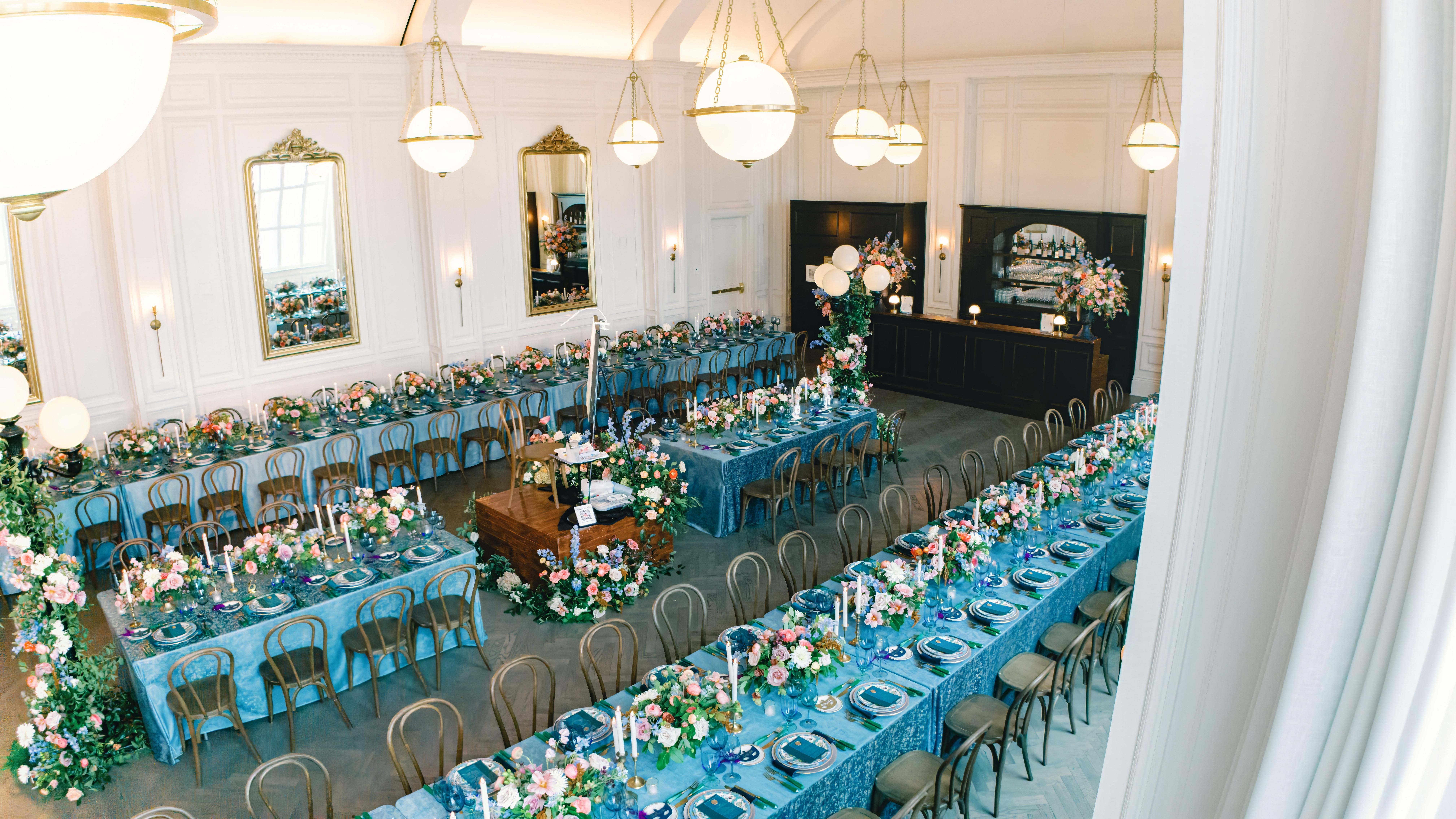 Ivory-paneled walls, dentil molding and herringbone parquet floor add timeless elegance to the 2,200-square-foot ballroom on the 19th floor. With arched barrel-vaulted ceilings and brass and opaque glass globe lights, the light-filled room is one of our most unforgettable spaces and will serve as a beautiful backdrop for your wedding ceremony or reception.