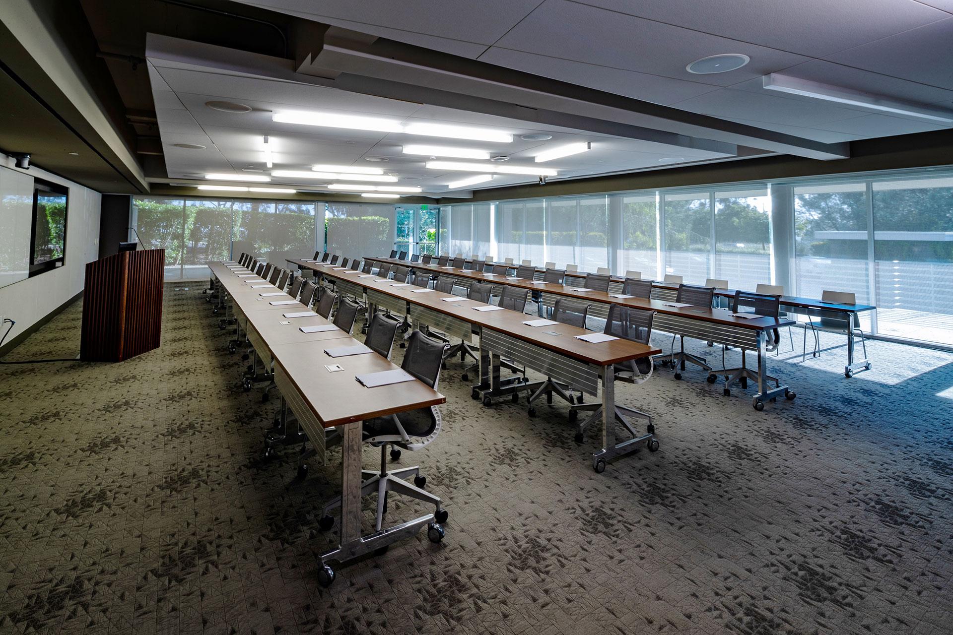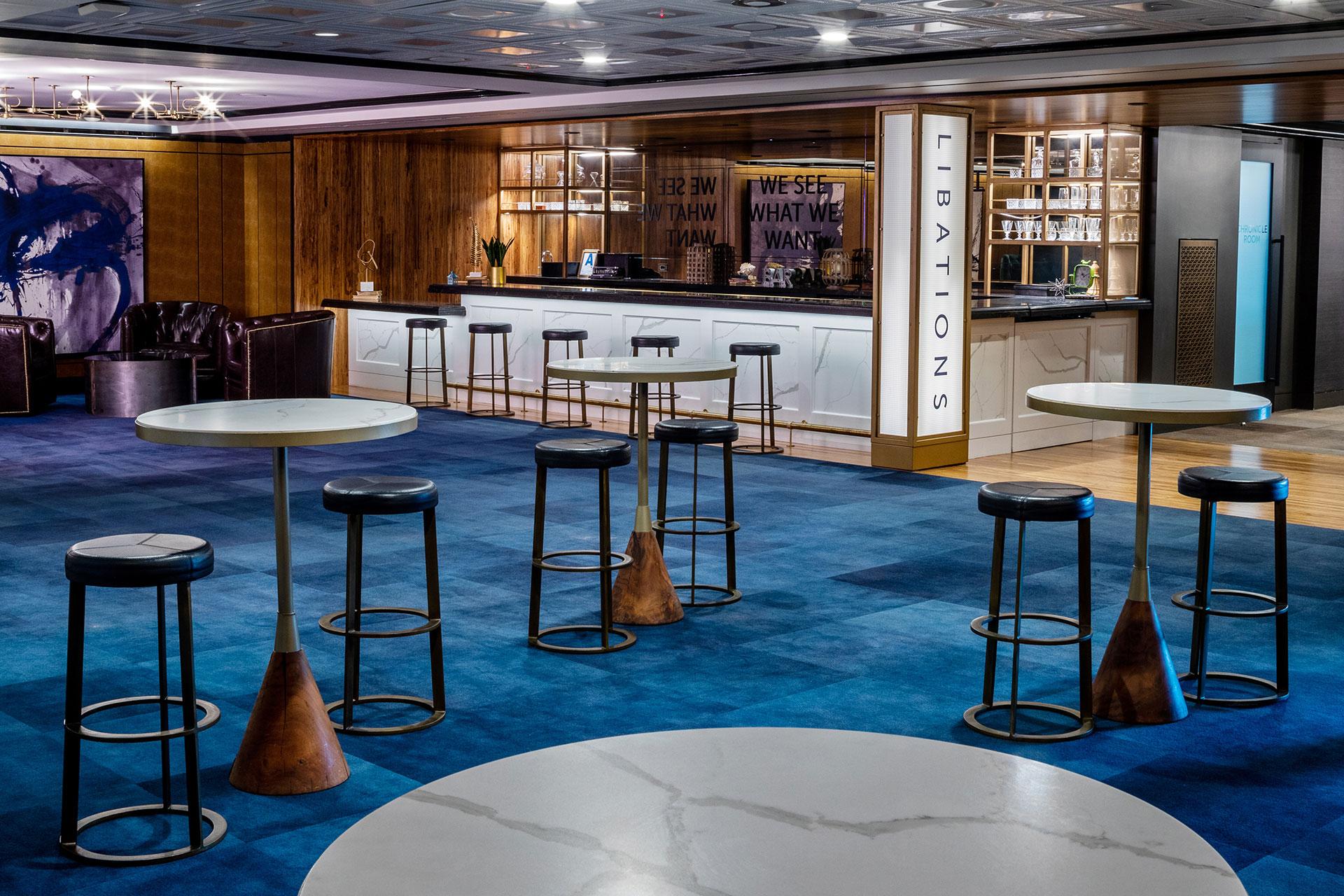 Host parties and events in this gorgeous indoor-outdoor restaurant venue. Known for casually sophisticated farm-to-table dining as well as its expansive event lawn, Farmer & The Seahorse is a coastal-contemporary restaurant and event venue. Spread your guests out onto the comfortable covered patio area, or celebrate your event under the stars on beautifully landscaped lawns. Intimate gatherings and private dinners can be held inside, within our newly renovated dining room. Wow your guests with luxury theater seating in a spacious professional setting with Illumina Theather. Chronicle's natural light and panoramic windows make any gathering more dynamic. Americana transforms dinners and meetings into lively experiences in this configurable space featuring organic accents that evoke an outdoor setting. Get the creative juices flowing with Helvetica's full bar setup, engaging décor, and comfortable seating.