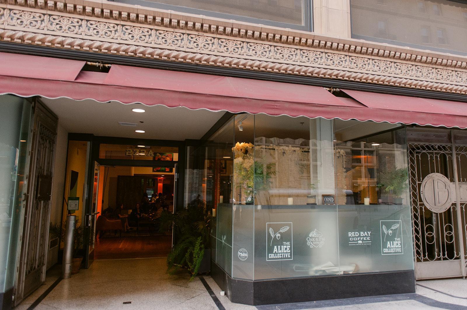 Welcome. The Alice Collective is a community-minded event space in the heart of downtown Oakland. We are able to host a wide variety of events from rehearsal dinners to seated dinners to happy hours to full day workshops. The 4,000 sq ft of flexible space is filled with local art, a fully stocked bar and two landscaped patios. We have an experienced staff standing by to help create a memorable experience at The Alice!