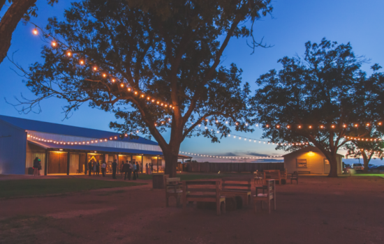 Converted into the dedicated outdoor bar, the original Smokehouse on the property is located under four grand pecan trees. The space is versatile, but is most often used as an outdoor cocktail area. It makes for the perfect location for guests enjoy the nice breeze, a refreshing beverage, and small bites under Edison style lights and a gorgeous Texas sky during the transition from ceremony to reception.