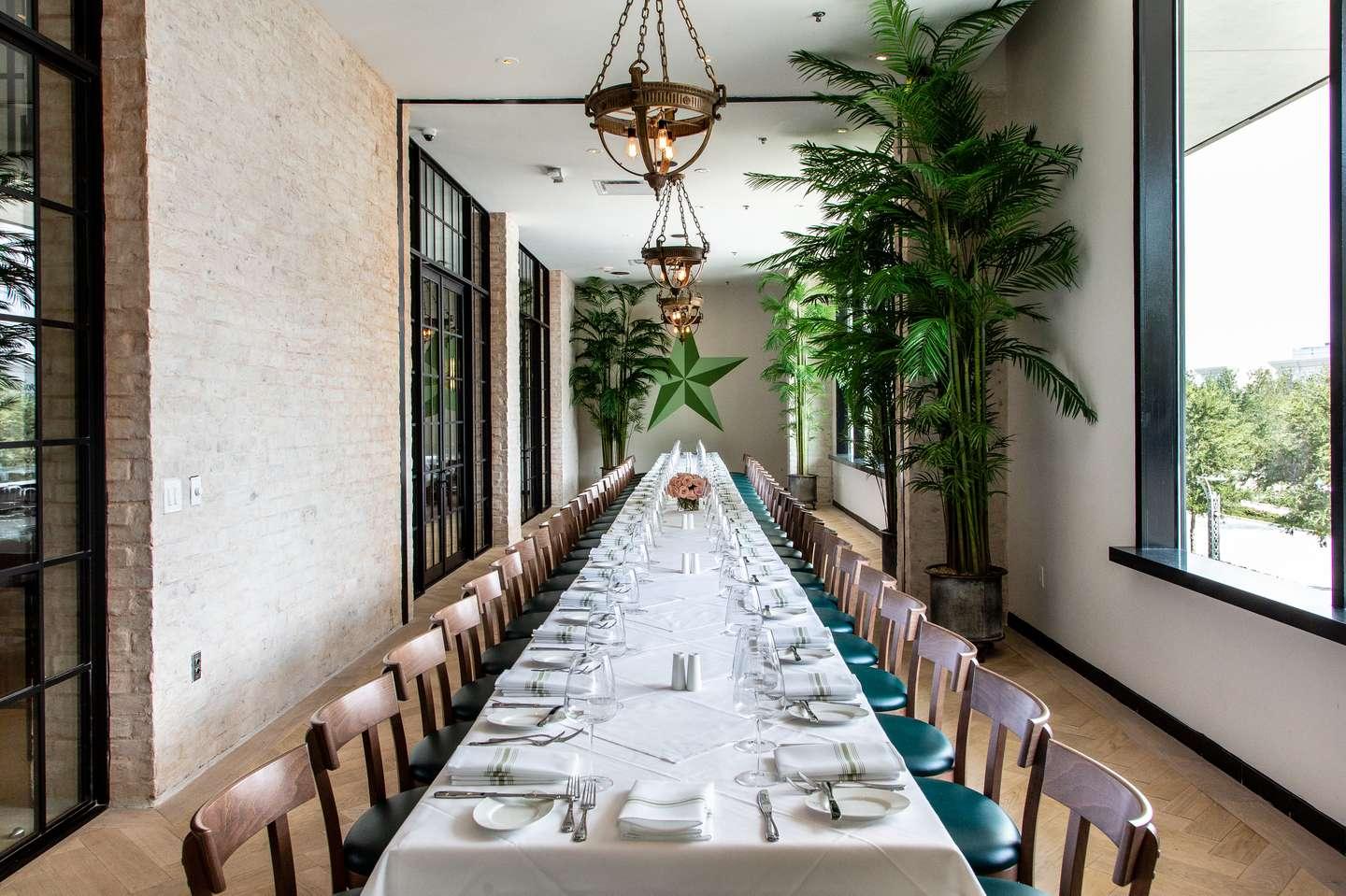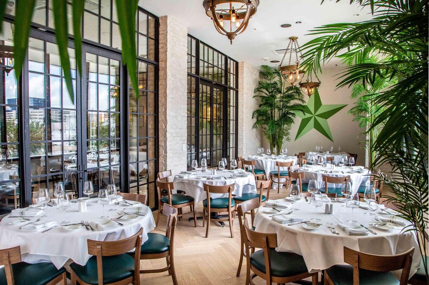 Our 11,000 sq. ft. space features urban and industrial design elements, including exposed whitewash brick walls and floor to ceiling black steel windows, along with coastal-influenced décor elegantly laid out with various accents and shades of our signature green logo color. Palm trees scattered throughout the restaurant help to create the clean, bright and casual atmosphere. As soon as guests walk up the stairs, they enter our bar area featuring a large, oval-shaped white stone bar with 36 seats and tufted, velvet banquet booths. The main dining room, which has a mixture of tables and banquettes, includes a floor to ceiling mural by famed New York graffiti artist, CES, that is sure to be a popular photo op for diners. Guests also have the choice to dine al fresco on the 1,040 sq. ft. patio offering exclusive views of the tree-lined Post Oak Boulevard.