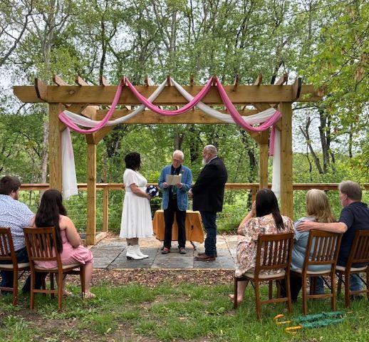 I cannot recommend John highly enough. He is extremely professional and experienced, crafted a ceremony from our interview and questionnaire responses that perfectly fit our vision, smoothly and calmly guided us through our rehearsal, and did a wonderful job with the ceremony. But beyond that, John is a true artist. If you are looking for a ceremony that is deeply personal, celebrating love and life and drawing on a connection with nature and spirituality, look no further. John does not merely weave words into emotion, he creates a whole world, a little enclave where you and your guests can linger in a moment of pure joy. There was not a dry eye in the room, and every single one of our guests (even my ultra-conservative, traditional, religious family) took time to tell us that the ceremony was the most beautiful, emotional, and heartfelt one they’d attended.