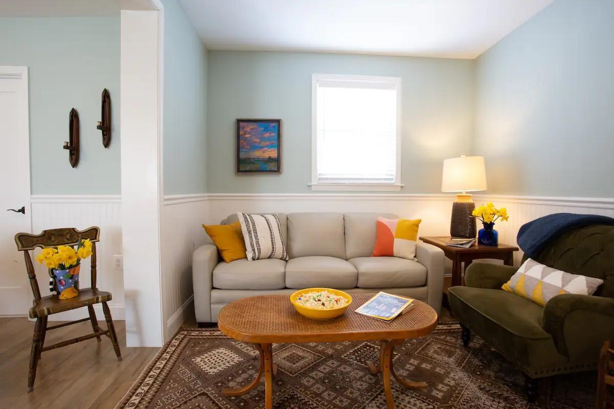 The Willow Suite features a private bathroom, kitchenette, separate living space, and entrance ramp for no-step access! Located in the heart of Capon Bridge, you'll find it easy to walk to local attractions and are sure to enjoy this inviting space. The Willow Suite is the largest, most spacious suite at Basswood. Located on the first-floor, the suite is unique because it has been made as accessible as possible, with the installation of an entrance ramp, for those who may find steps challenging.