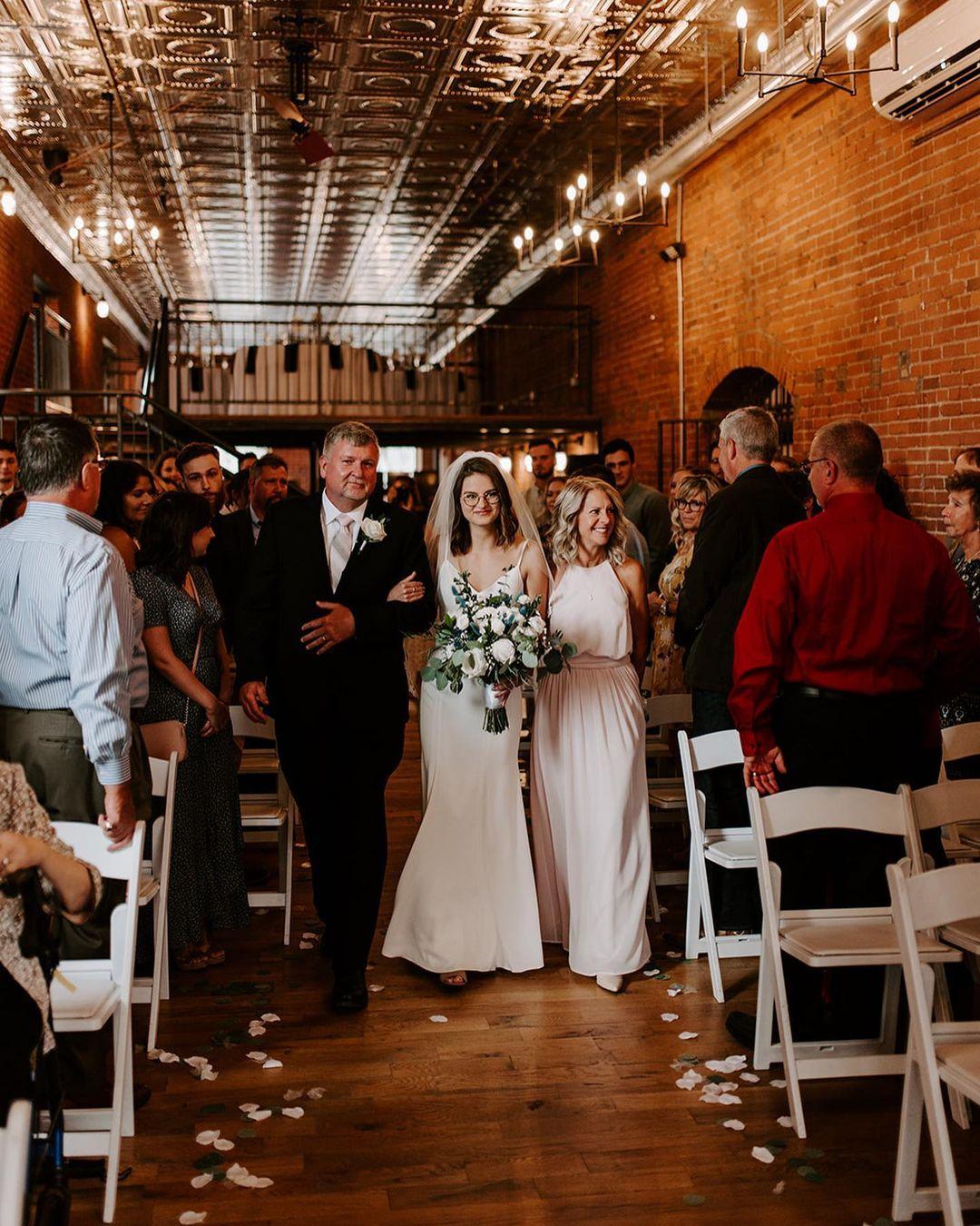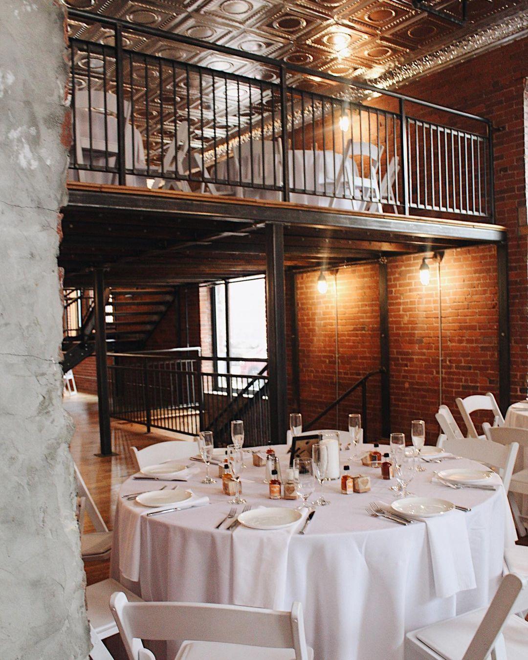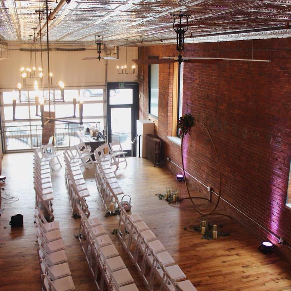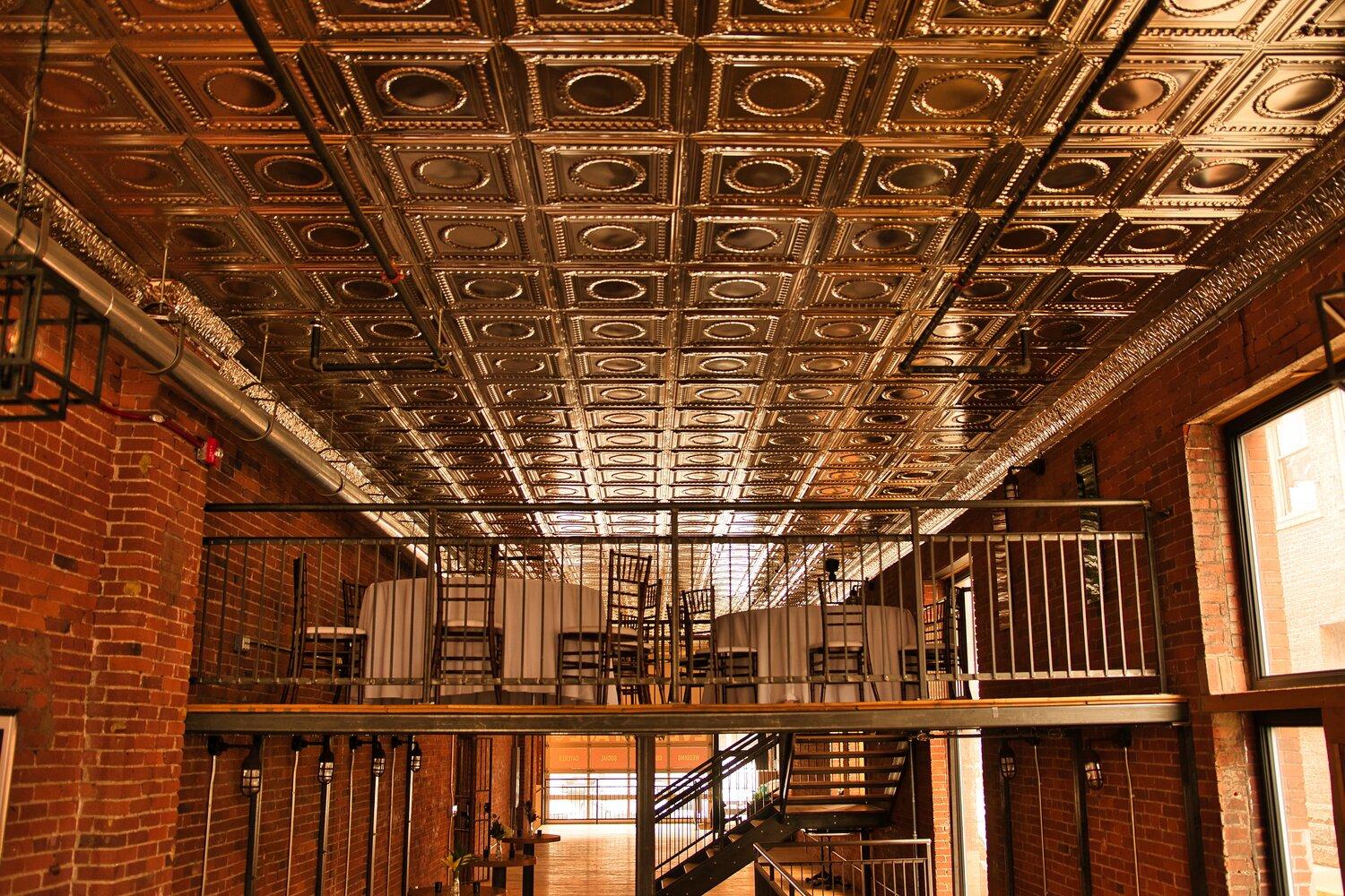 As you first walk in, you will be taken by our gorgeous tin ceiling, large picture windows and functional garage doors! There is plenty of natural light within our two connecting bays, accented with brick walls, hardwood floors and iron railings. As you move throughout, you will see two lofts, located on either side of the main floor, perfect for your DJ or additional seating. The lower level features marble clad facilities and additional event space waiting to be filled with your guests!