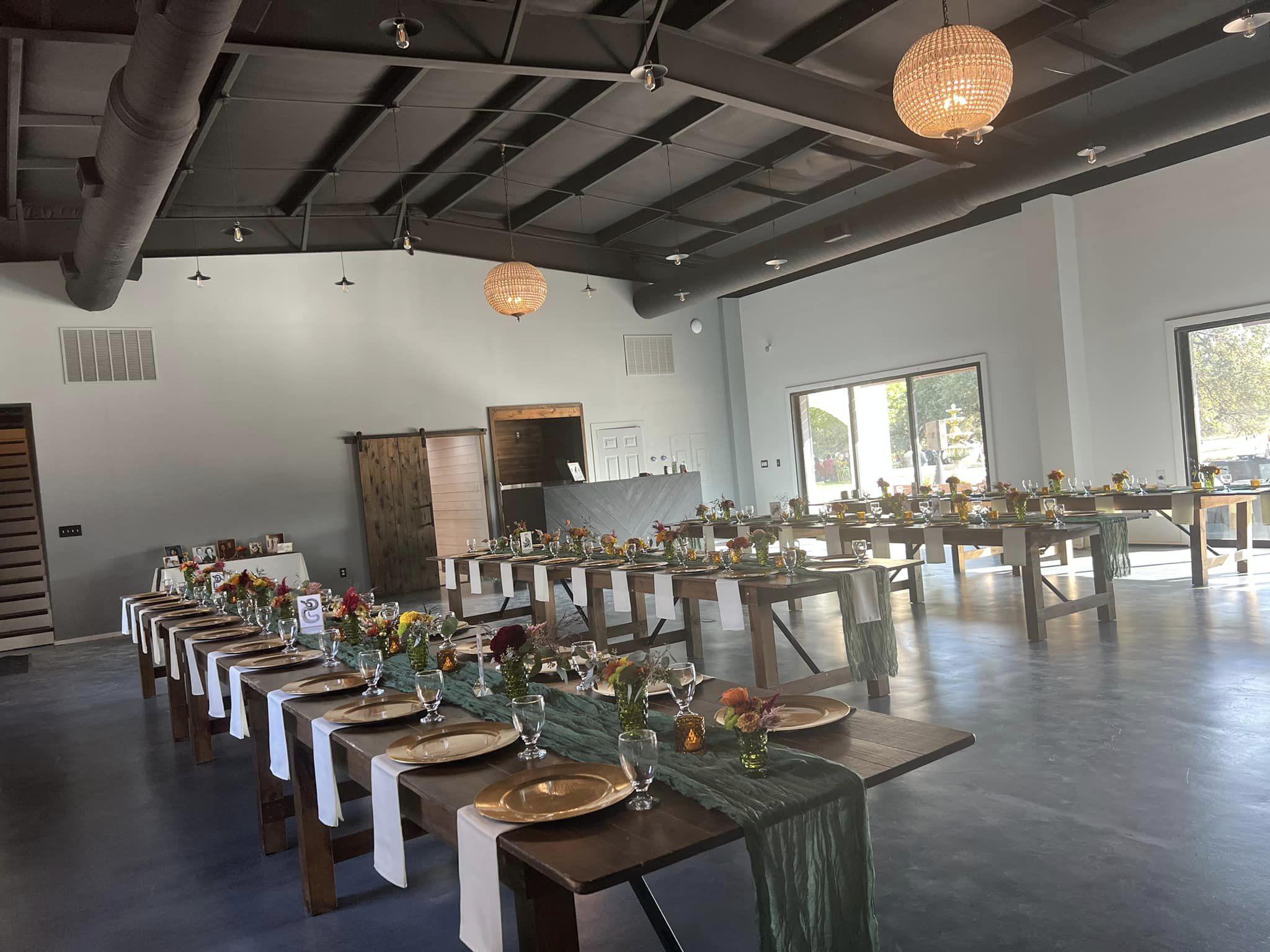Our grand room provides 2800 sq. ft. of heated & cooled space while our outdoor 4000+ sq. ft. patios are perfect for dancing under the stars, lawn games, or your favorite food truck! You'll love getting ready in our charming bride's suite and groom's area with plenty of space for your bridal party & family to relax before the event. Come celebrate your true love story with us!
