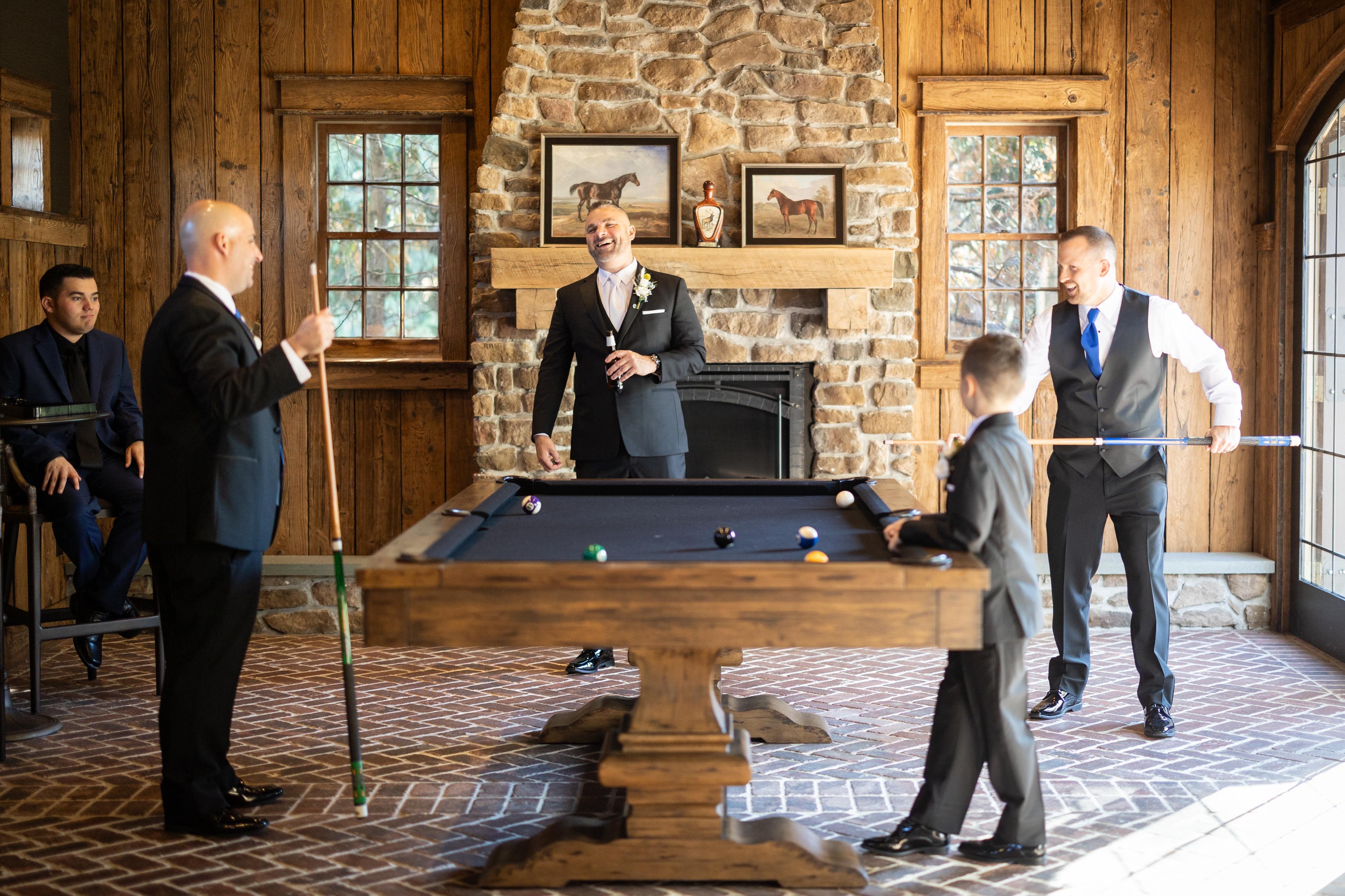 The Groom's Lounge at The Ashford Estate is designed for the groom and his closest friends to kick back in style. With a pool table, TV, and fully stocked fridge, it’s the perfect place to unwind, enjoy some friendly competition, and share a cold drink before the wedding celebration begins.