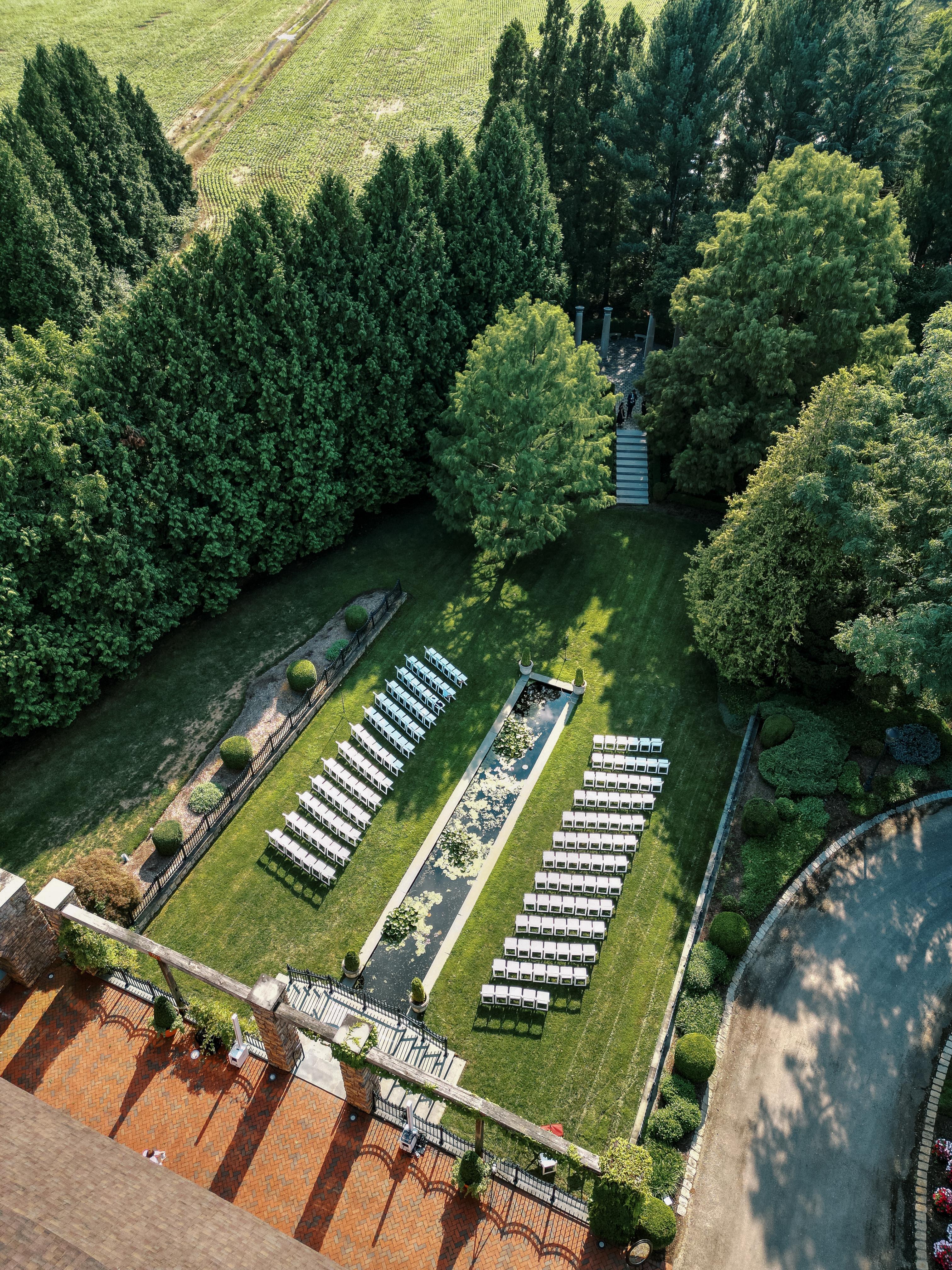 From a small wooded road, over an antique steel bridge, you enter lion-guarded iron gates onto a dramatic white crushed stone drive, lined with old-growth pines, there emerges The Ashford Estate. A stunning estate surrounded by hundreds of acres of preserved farmland, complete with sparkling fountains, waterfalls, a floating gazebo, stone ruins, garden arbors, and sprawling views. In addition to the natural beauty of its grounds, The Ashford features immaculately preserved and architecturally astonishing structures, such as the Barn Chapel, Carriage House, and Grand Ballroom.