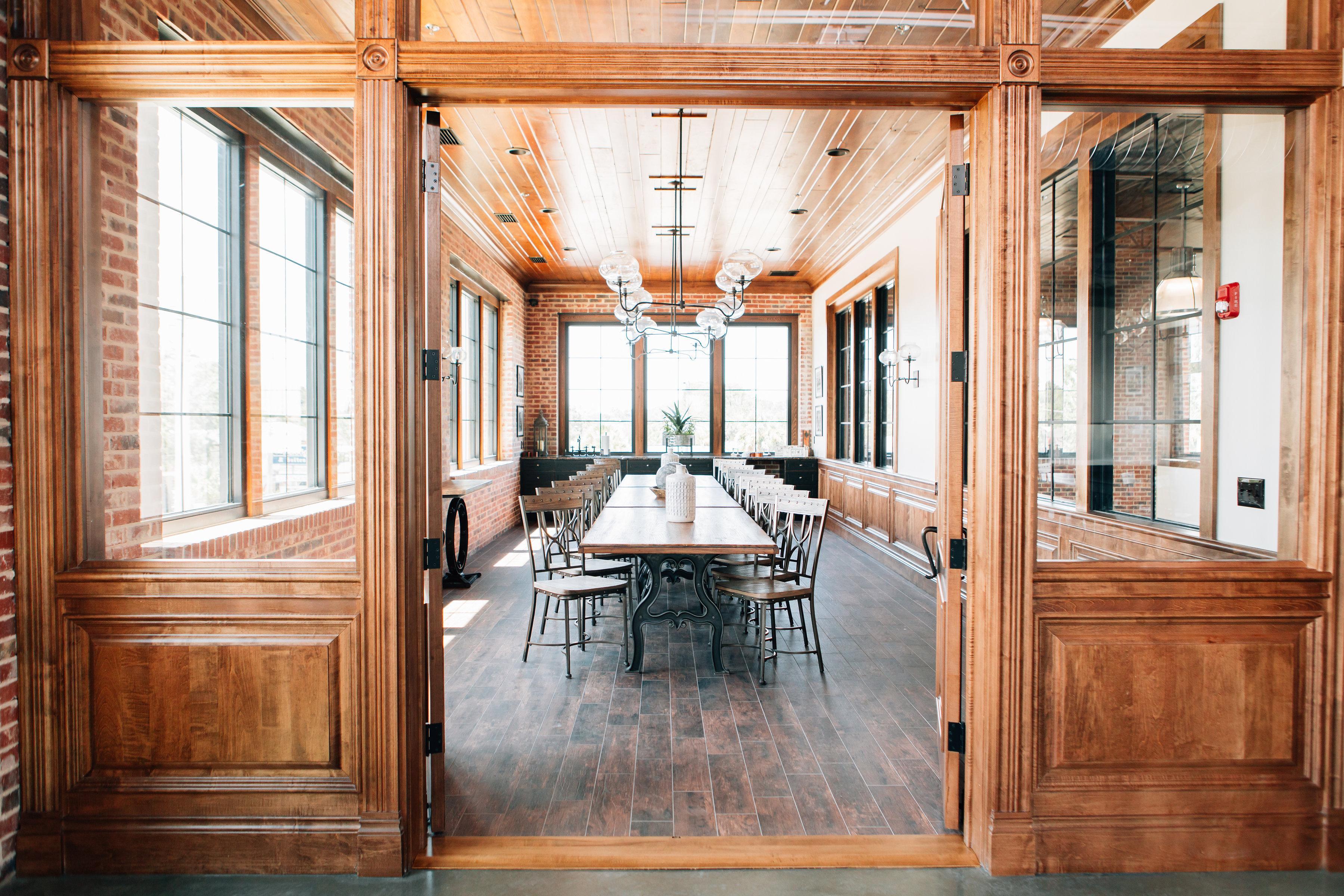 The Assembly Line room is located in the back half of the second floor. This rectangular space offers a unique auto-shop feel with fogged garage doors, an oversized sliding barn door & metal chandeliers. The room proceeds onto our "Lift Deck" terrace offering both indoor & outdoor access for your event making it perfect for cocktail hour for weddings, first looks, or a small event on its own.
