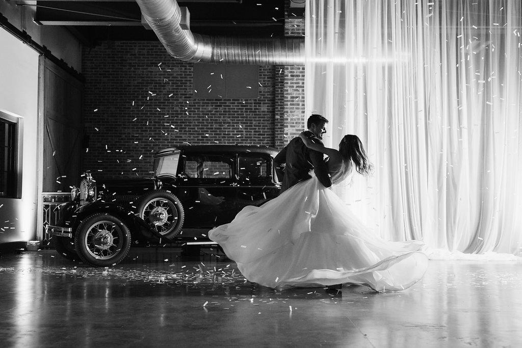 The second floor of Art ‘n Motion opens into The Classic. This room is the similar industrial style feel as the Showroom on a smaller scale. Featuring neutral tones, brick walls, massive windows and iron railings looking onto the Showroom below, this is a perfect space for a more intimate event. This room also has its own convenient restroom access and elevator access. This room is used as the ceremony space for larger weddings or as a reception room for smaller events.