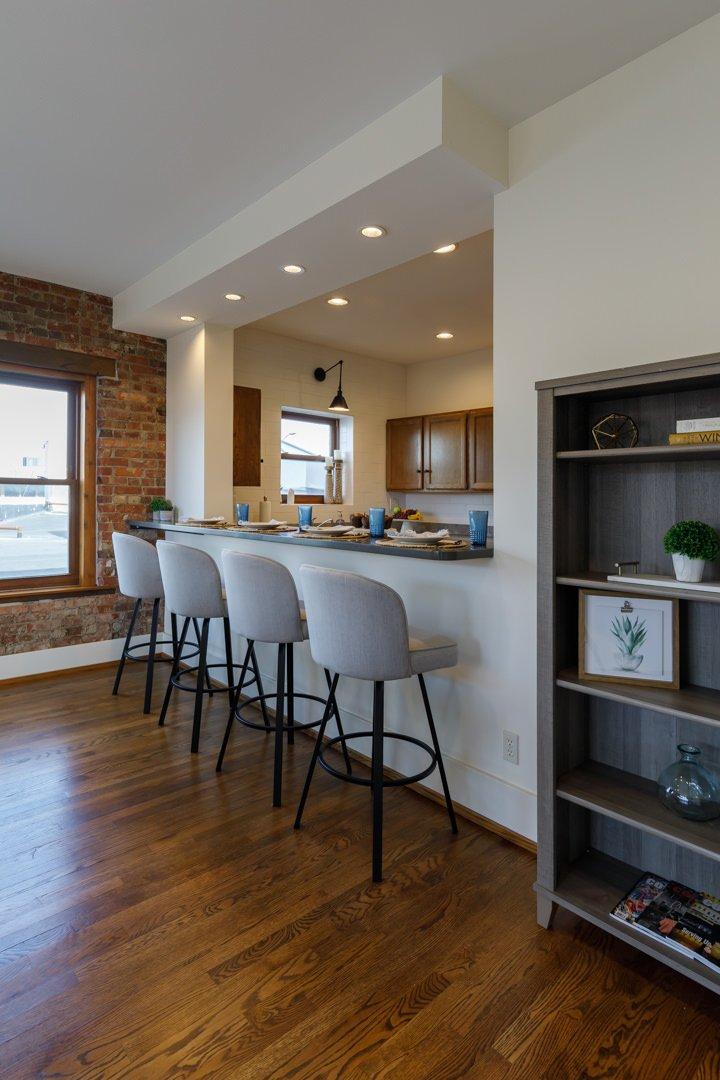Our onsite bridal suite is the perfect place for newlyweds to spend their first night together after such a fun-filled day, like their wedding! It is a one-bedroom apartment with a full kitchen, living room, full bathroom and glam room. The downtown location offers views of Broadway Street from the balcony and is walking distance from local vendors and restaurants.