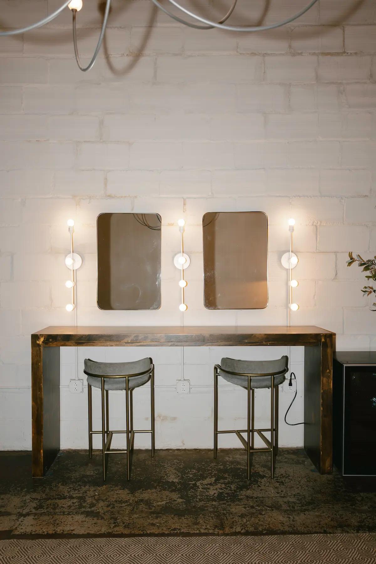 Venue Rental Includes: • Bar & Suites: The venue is equipped with a striking, open bar space featuring tiered shelving and dramatic backlighting. It also includes a freshly styled bridal suite and a comfortable and welcoming groom’s suite (one of which is shown with elegant mirrors and seating), ensuring comfortable, stylish areas for both wedding parties to prepare. • Tables (rounds, banquet, cocktail) • Chairs • Lounge Furniture • Five Hour Event Time • Five Hour Setup Time • Access to indoor/outdoor spaces • On-Site Prep Kitchen • Ceremony Package (add on)