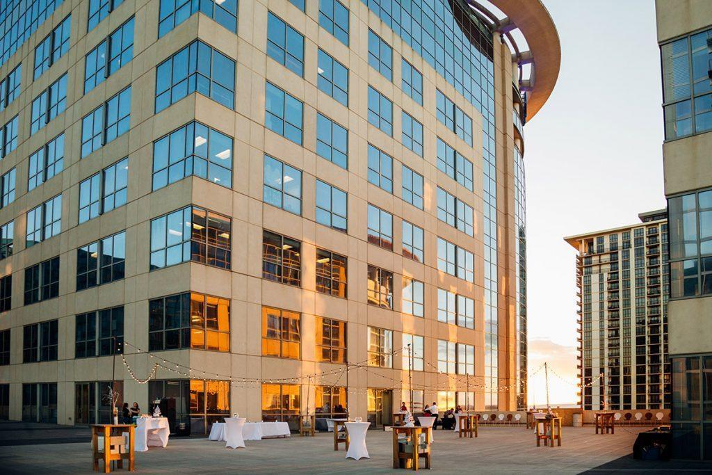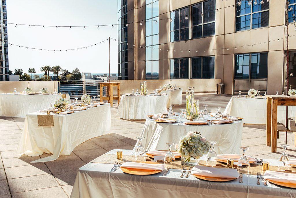 Full use of the venue for up to 12 hours, Wedding Venue Planner, Open-air Balcony, Outdoor market lighting, Sweeping views of the city, Private Wedding & Hospitality Suite, 40 Rectangular banquet tables, 10 Round cocktail tables, 250 White resin folding chairs, 8 Uplights, Venue coordinators, Housekeeping, Security, Preferred Vendor List