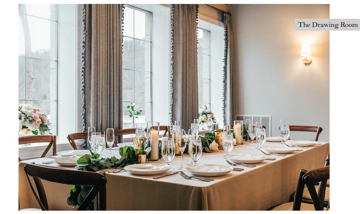 Located just steps down the canal, follow a lit pathway that leads to a historically inspired event venue. The Drawling Room and Study are perfect for privacy and variety. Union Mills offers expansive options without compromising style, service or perfect river views.
