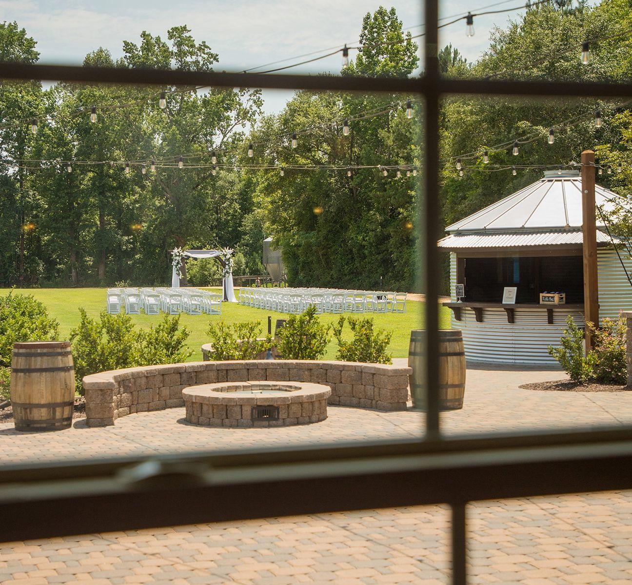 The Barn at Broadslab is a climate-controlled event space. Providing full banquet facility amenities, The Barn at Broadslab’s venue has everything you need with a stage, a bridal suite and groom’s room, a charming stone fireplace, an outdoor patio complete with patio lights and a fire pit, a grain-bin bar, restrooms, a prep kitchen, and food hall. The Barn at Broadslab also offers a spacious, natural outdoor area alongside the distillery, as well as room by the pond to hold a ceremony.