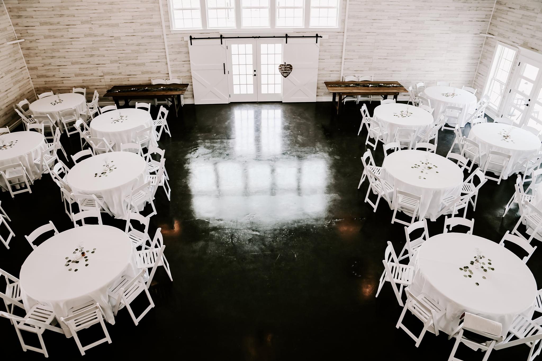 - Set-up, Tear-down, and clean-up. - 20 – 60” round tables - 200 – white chairs - 6 – 6’ rectangle multipurpose tables - 2 – farm style tables - Linens - Commercial Kitchen - Two Bar Areas w/ small ice machine - Balcony (with 15 cocktail tables and 30 chairs) - Patio (with 10 tables and 40 chairs) - Restrooms - A/C and Heat - PA system w/ mic - 2 hour window for rehearsal/walk-through