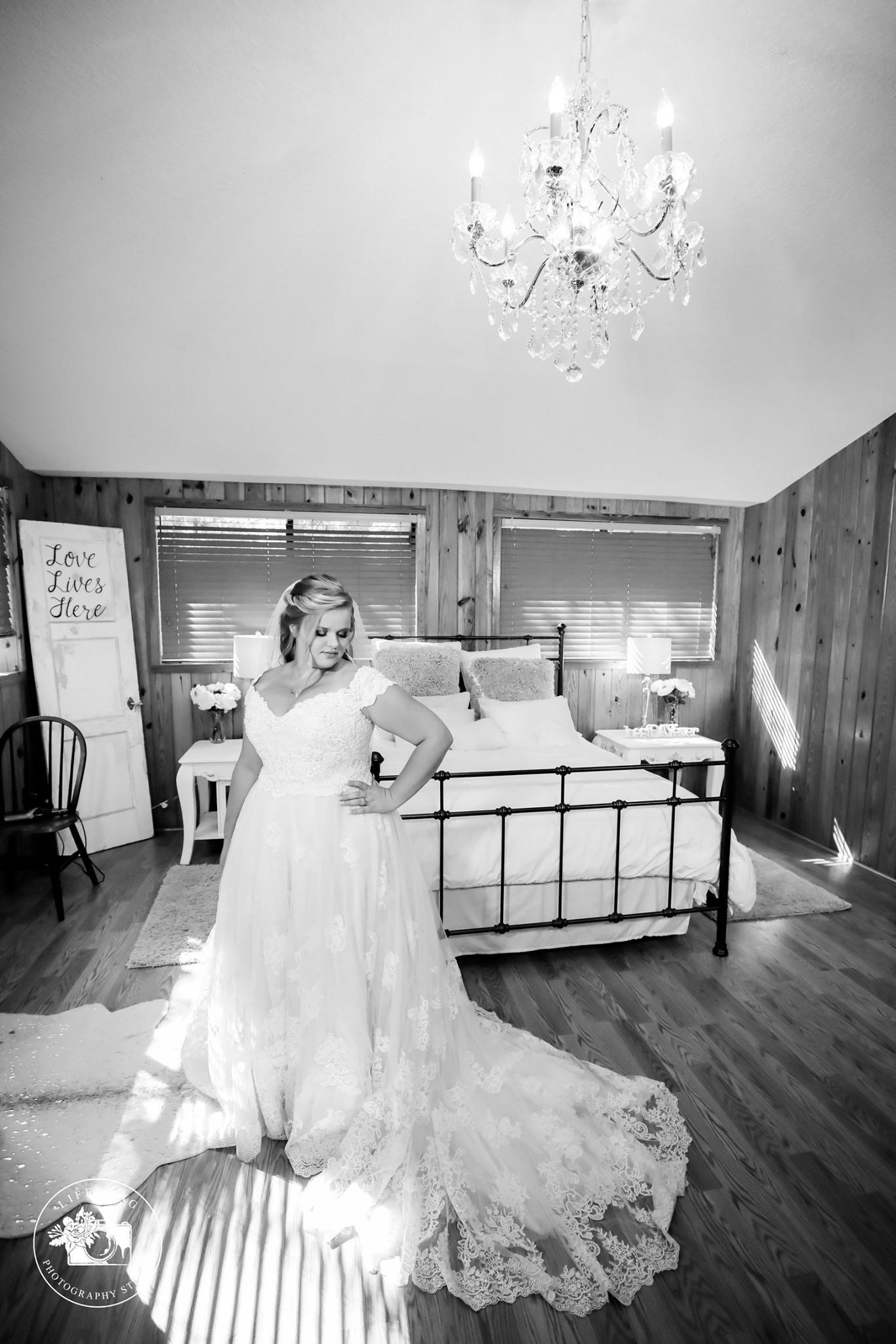 We designed this suite to be the perfect place for you and your friends and family to spend all day in. A 1000sqft cabin with a full kitchen, full bathroom, plenty of vanities for hair and make-up and fabulous chandelier lighting. Imagine⌠itâs your wedding day and all of the questions have been answered, all of the details are covered, and you are relaxing in our lakeside cabin with your closest friends getting ready to walk down the aisle. Mimosa anyone?