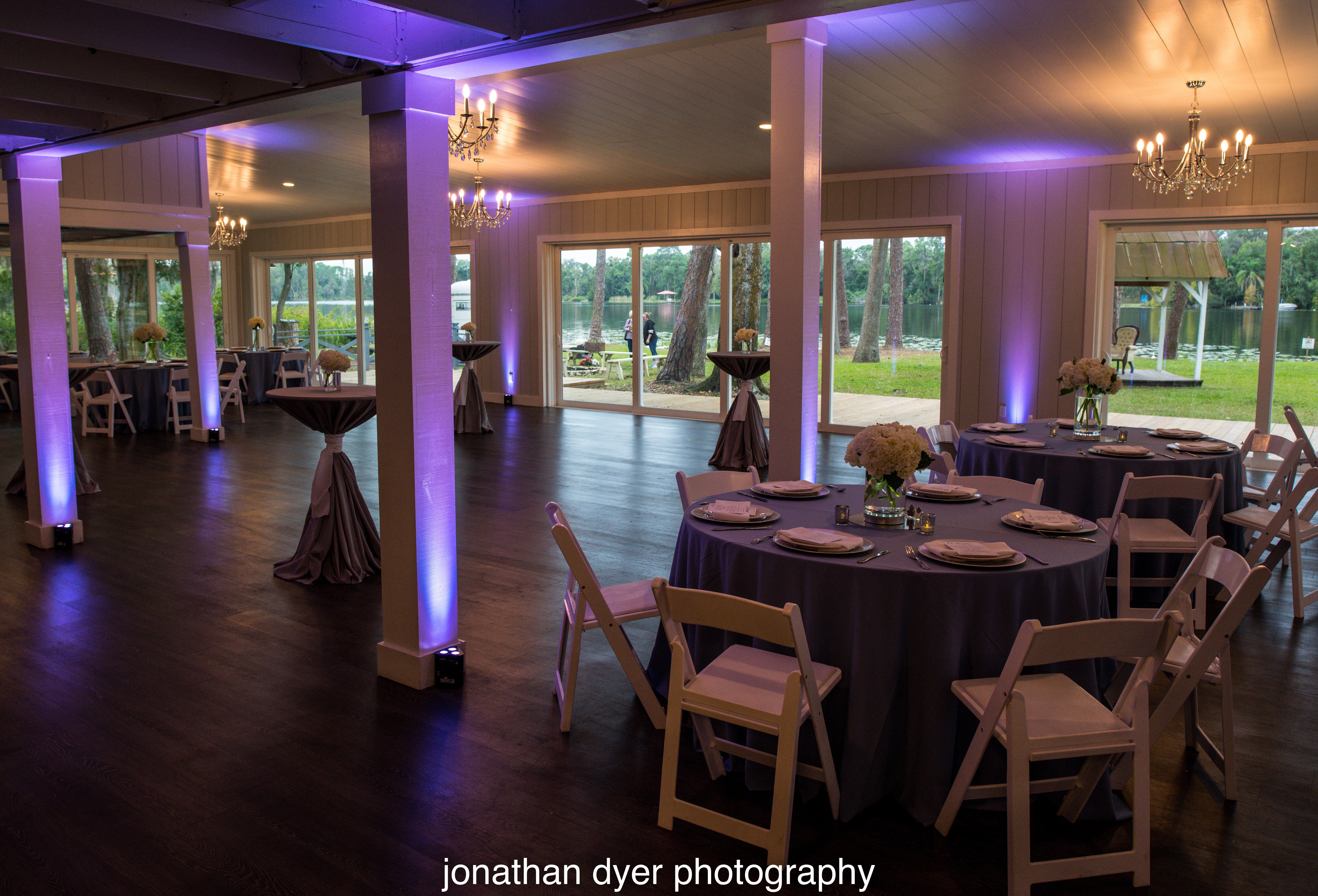 The Lodge is a brand new space, created from the historic Lodge of Camp Keystone. Stunning lakefront views, original stone fireplace. Truly unique for Tampa Bay.