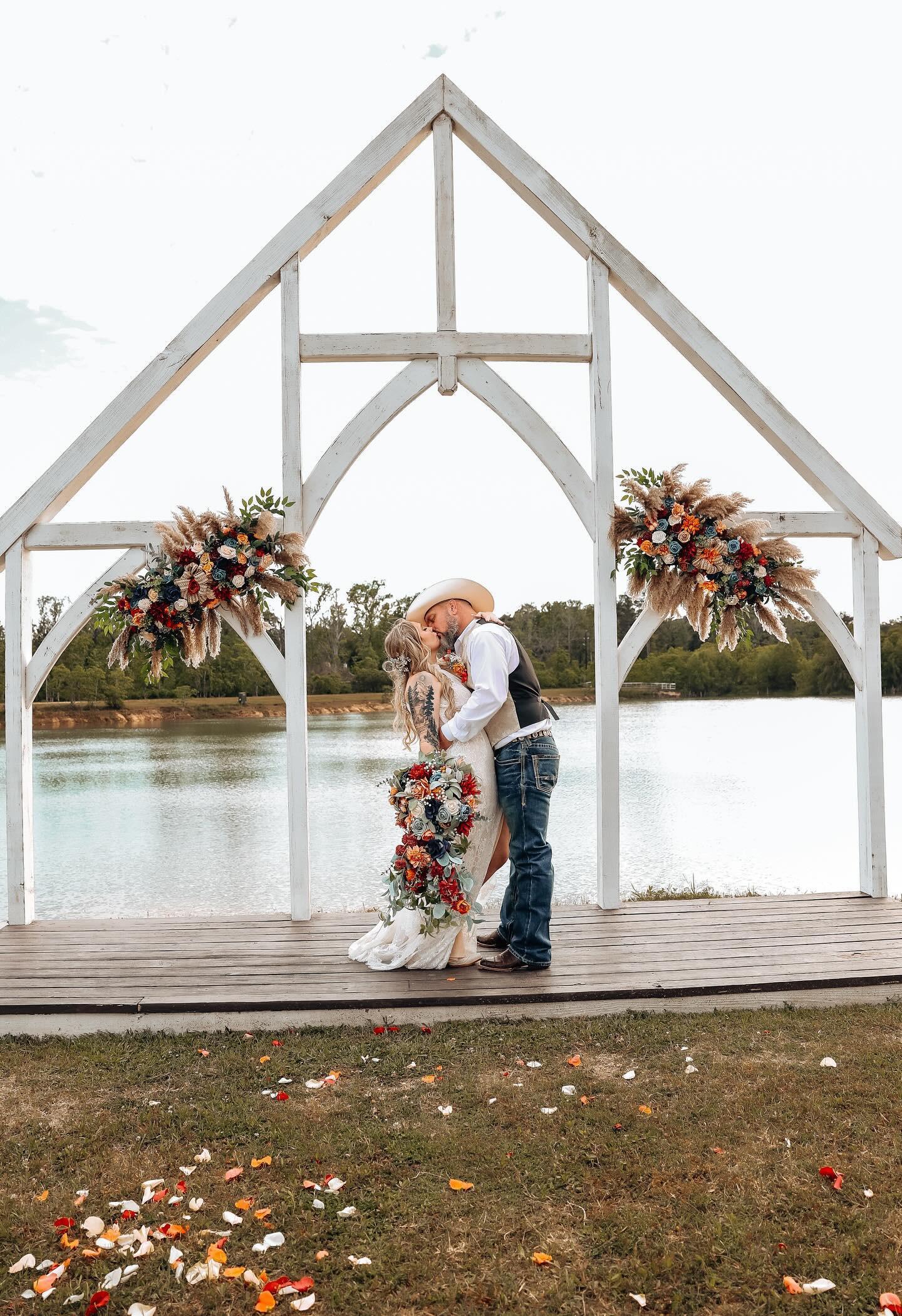 Our DIY venue package offers you the flexibility to create your dream wedding. Enjoy exclusive access to our beautifully decorated barn, four outdoor ceremony sites, and a covered patio area. You bring in your own vendors and decorations to personalize every detail. The package includes tables and seating, a bridal suite for getting ready, and a man cave with pool/poker, a 70-inch TV, and a fishing lake. Customize every aspect of your wedding while enjoying our stunning venue.