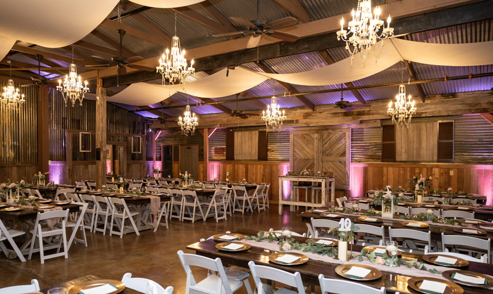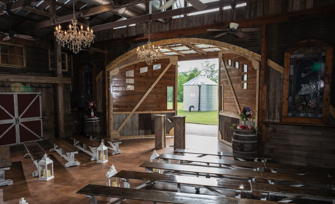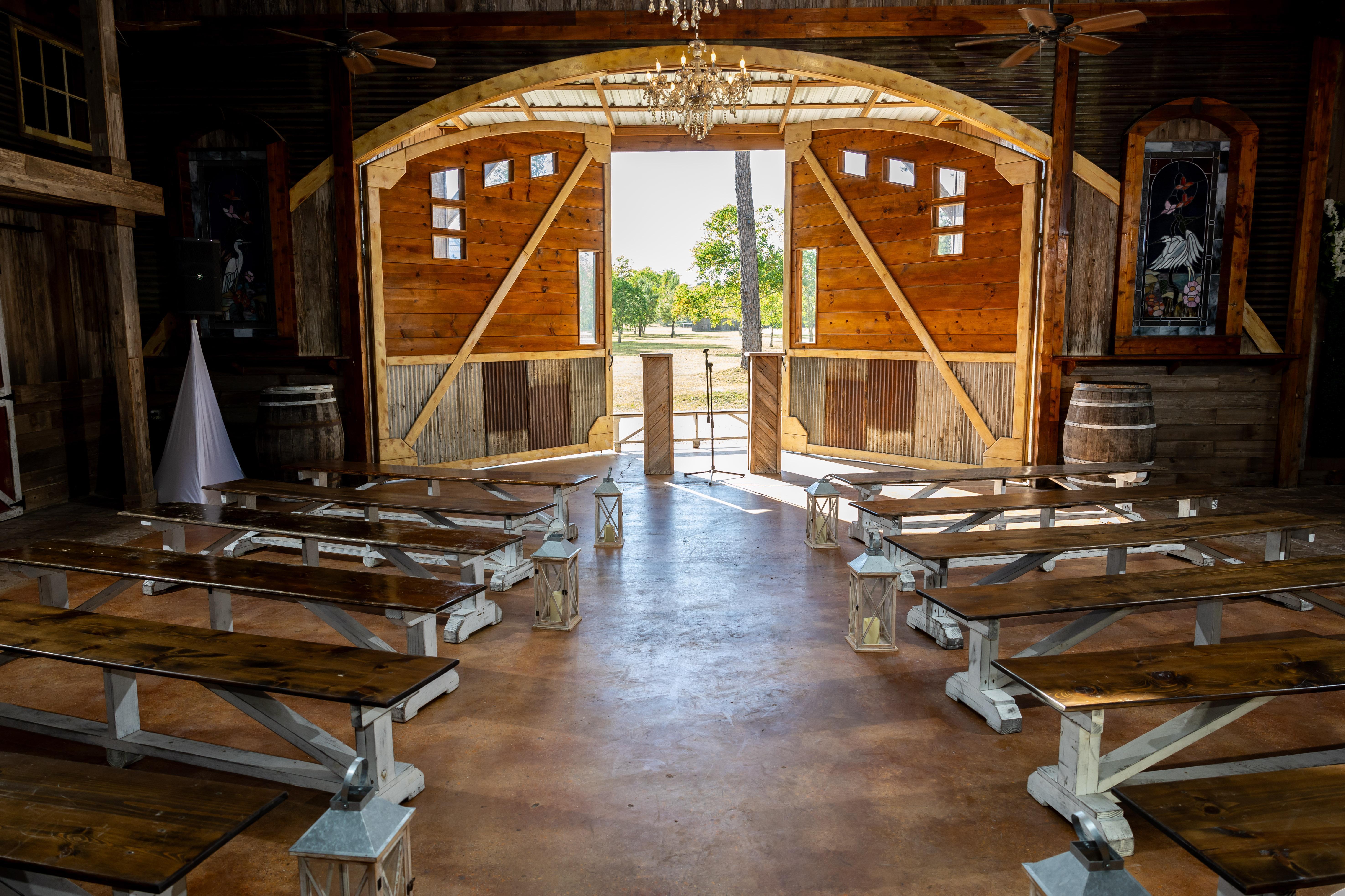 This venue is amazing and very unique. They have a beautiful property sitting on several acres with 2 fishing ponds and features live longhorns roaming the grounds. The building is the classic barn style and can accommodate the ceremony with 2 outdoor locations or can be under a big covered patio if the weather is bad. Parker and his team are professional and easy to work with, and. they respond quickly to questions or concerns. Can’t say enough good things about The Barn!
