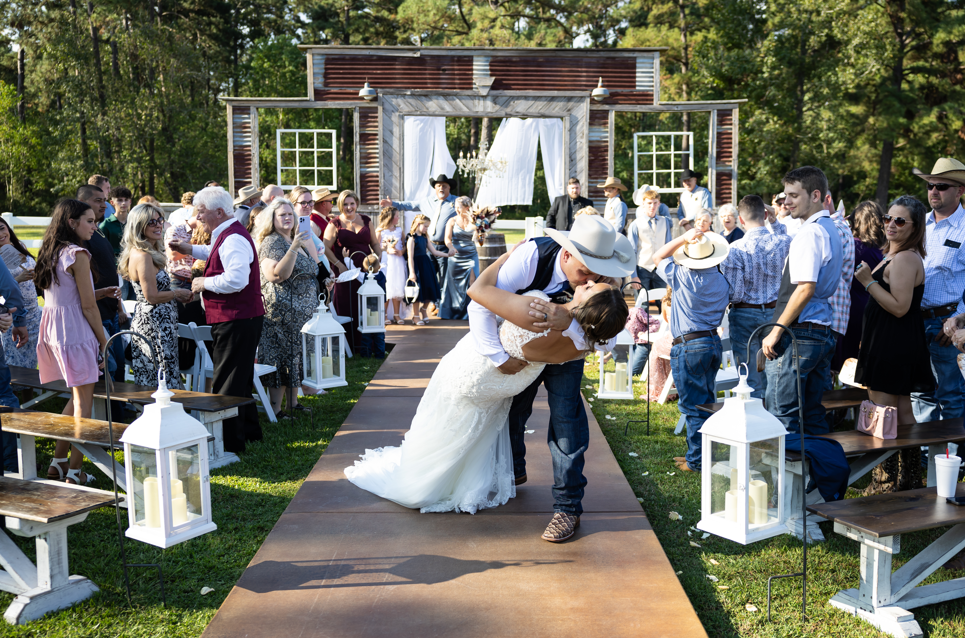 Welcome to The Barn at Four Pines Ranch, where wedding dreams come true in the rustic charm of Crosby, Texas. As a family-owned venue, we cherish hosting your special celebrations. Our venue began as a cattle and horse ranch. In 2015, a friend's wedding request transformed our barn into a premier wedding site. We offer a warm, inviting atmosphere on our 54-acre ranch. Our elegant event hall features chandeliers, heating, and air conditioning. We provide various settings for ceremonies and receptions, including a patio and outdoor locations. Our bridal suite offers dual showers, a kitchen, and makeup stations. The gentlemen enjoy a man cave with a TV, pool table, poker table, and lounge area. Beyond weddings, we support the community through fundraisers, school banquets, and an annual event offering free weddings to local military and first responders. Choosing us means joining our family. We ensure your wedding is joyful and seamless, with every detail handled with care.