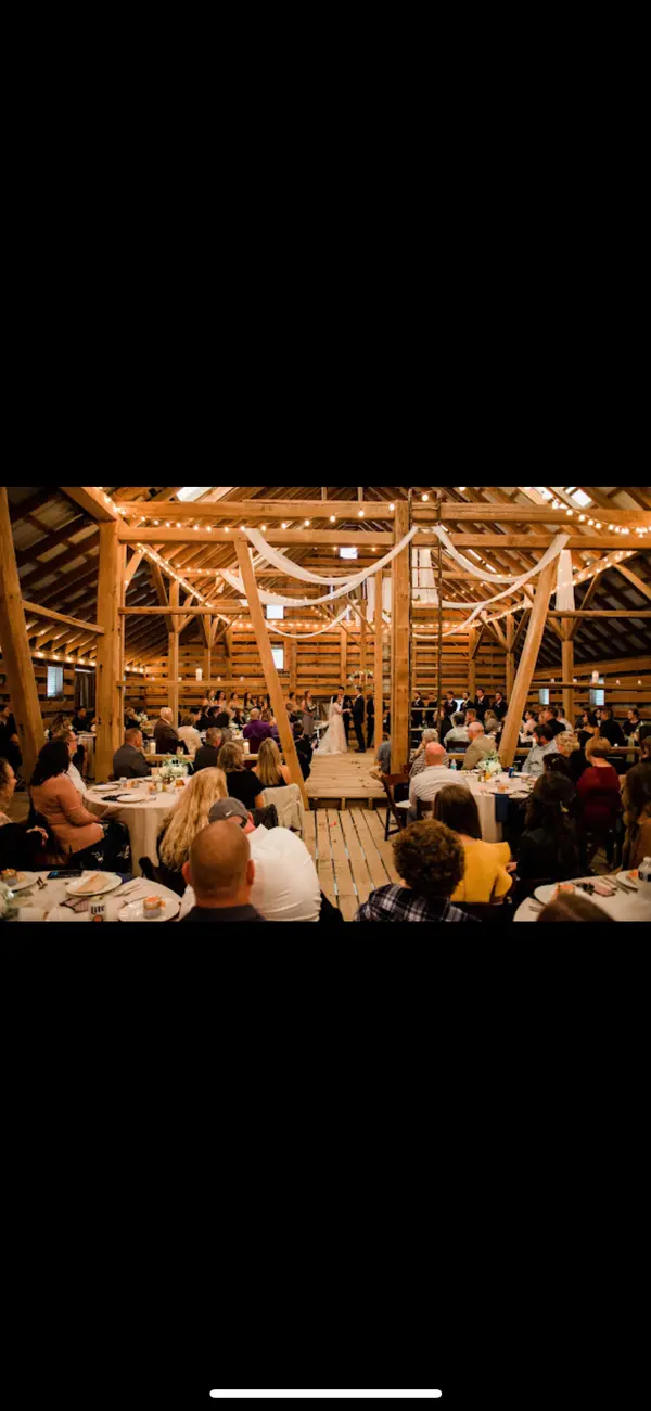 -tables & chairs for up to 180 people - indoor restrooms for your guests comfort - dimmers for total lighting customization - venue coordinator - entryway drapery - catering prep area with commercial refrigeration and heated holding cabinet - handcrafted live-edge oak bar paired with vintage whiskey barrels