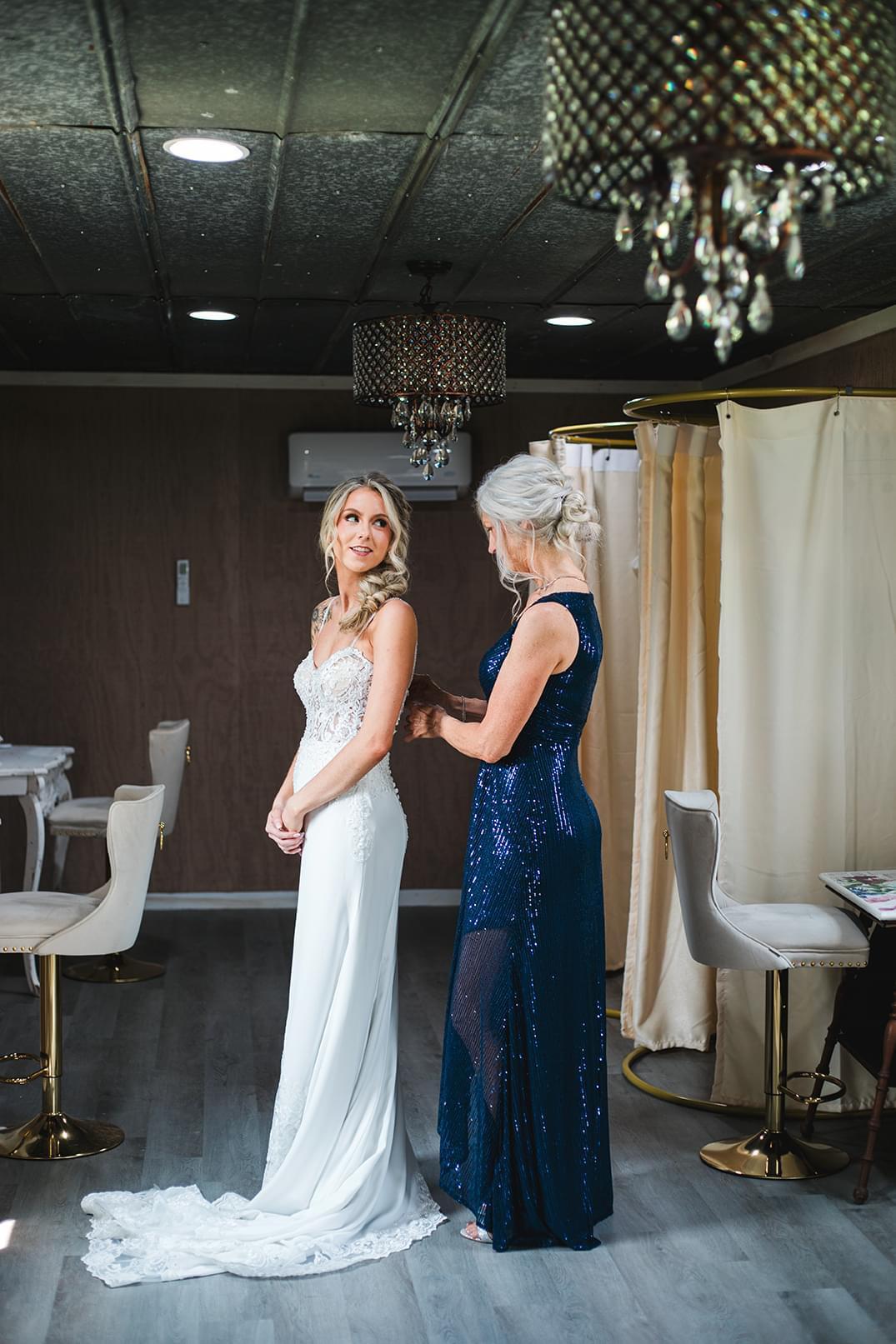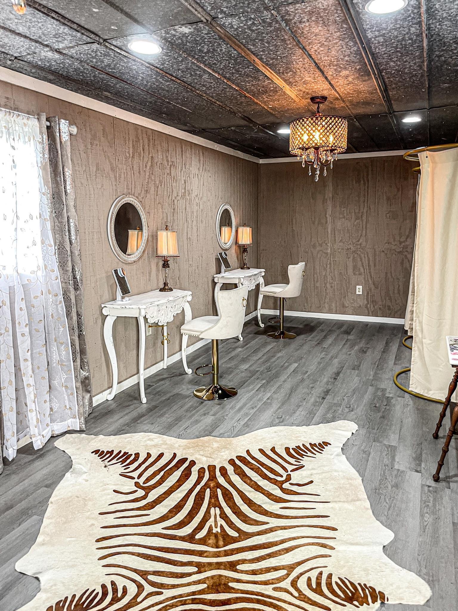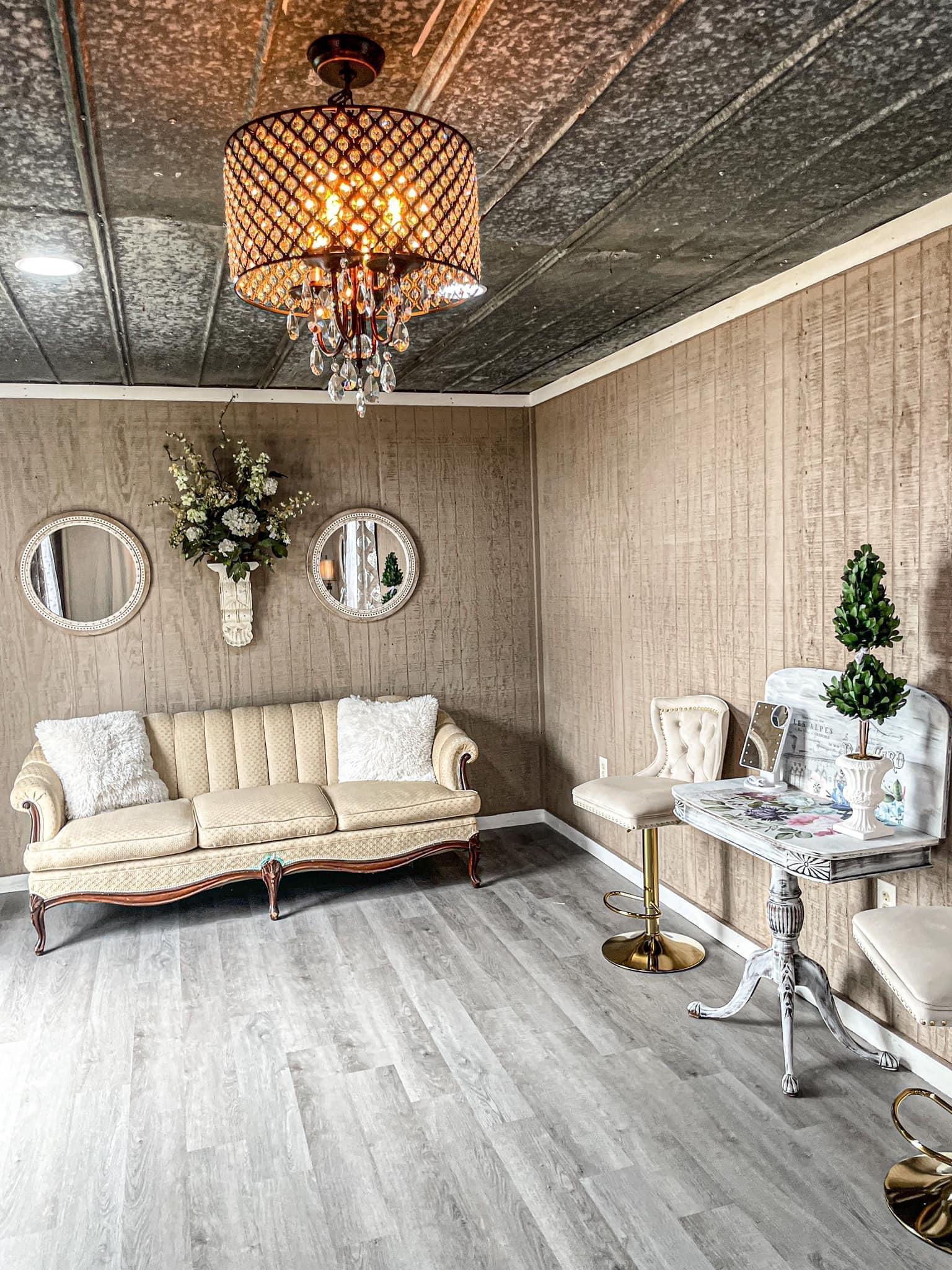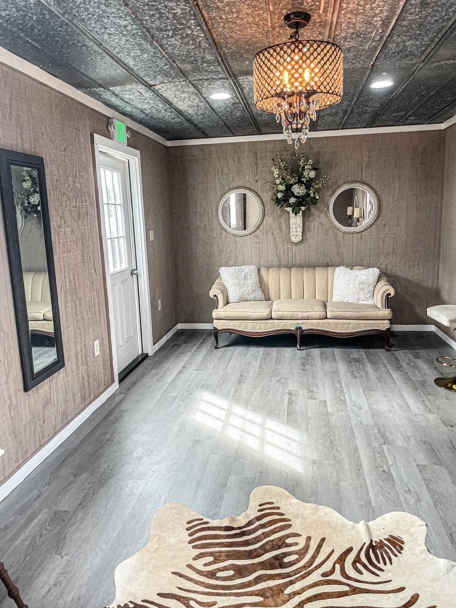 The perfect place to get ready for your wedding! Our bridal rooms features 4 vanities with mirrors and makeup mirrors, 2 curtain enclosed dressing spaces, a full length mirror, and a couch. It's perfectly decorated with chandeliers to make all your pre-wedding photos just as perfect!