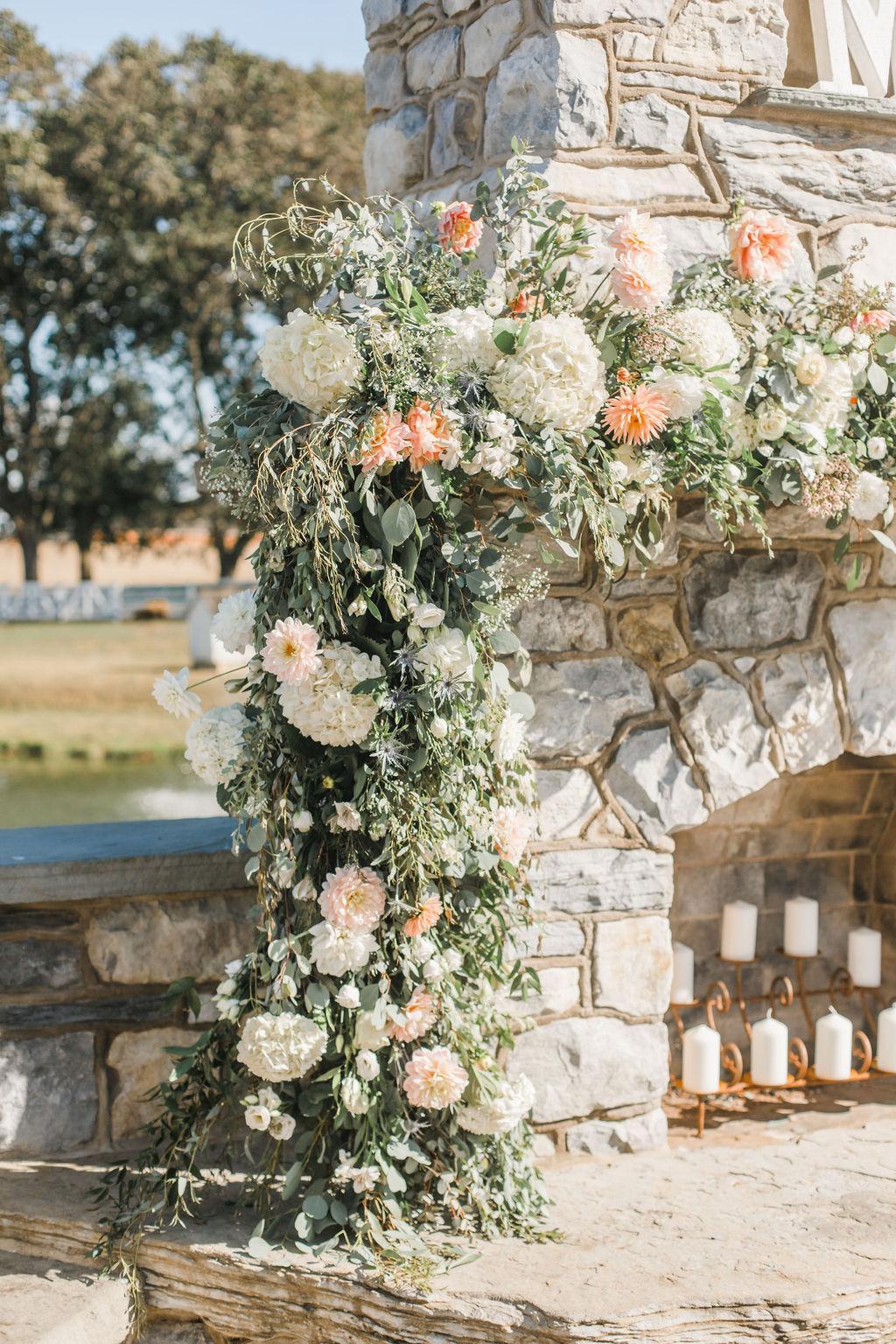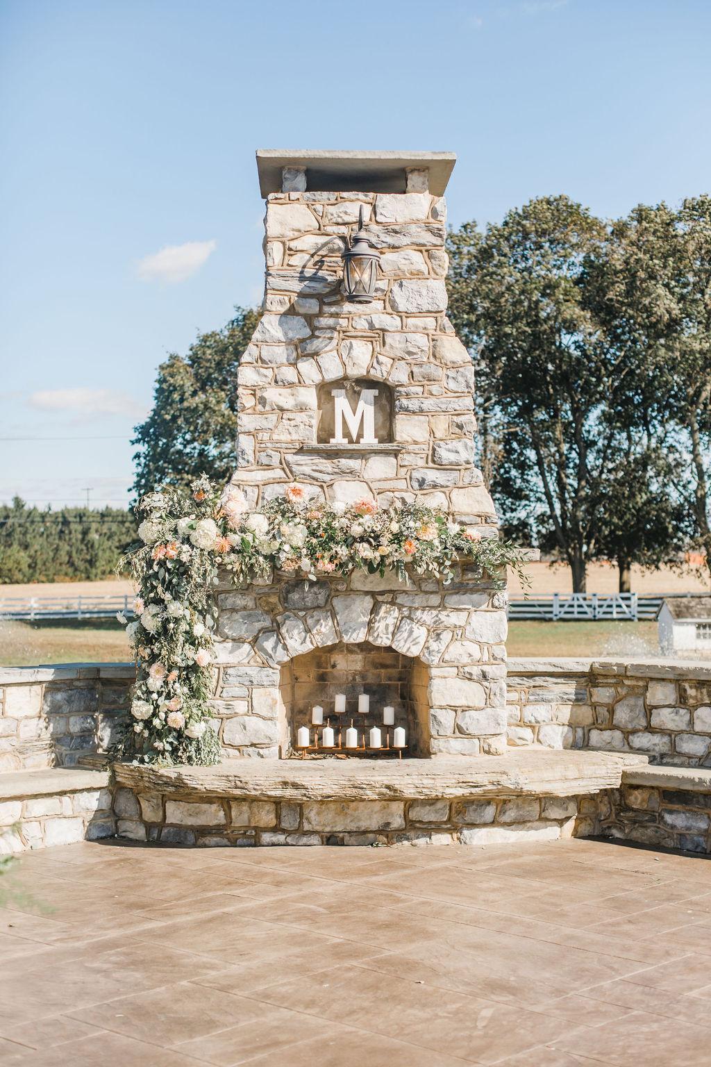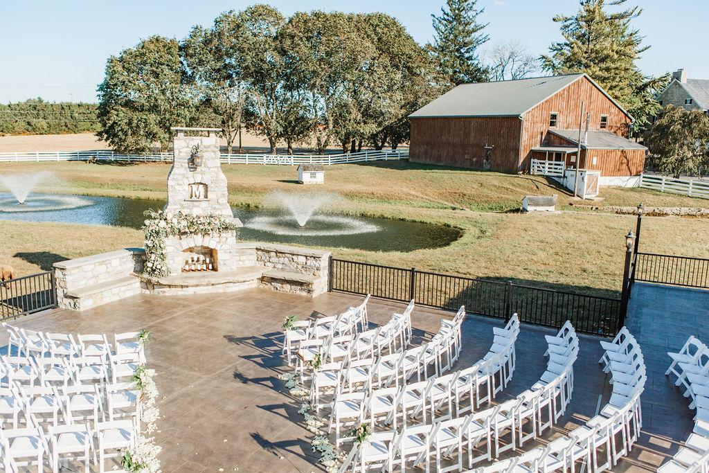 The Limestone Fireplace with a pond, fountains, and willow trees in the background is perfect for Ceremonies. The Courtyard connects to the Stables for Cocktail hour and also has a rustic pavilion with a firepit and seating underneath.