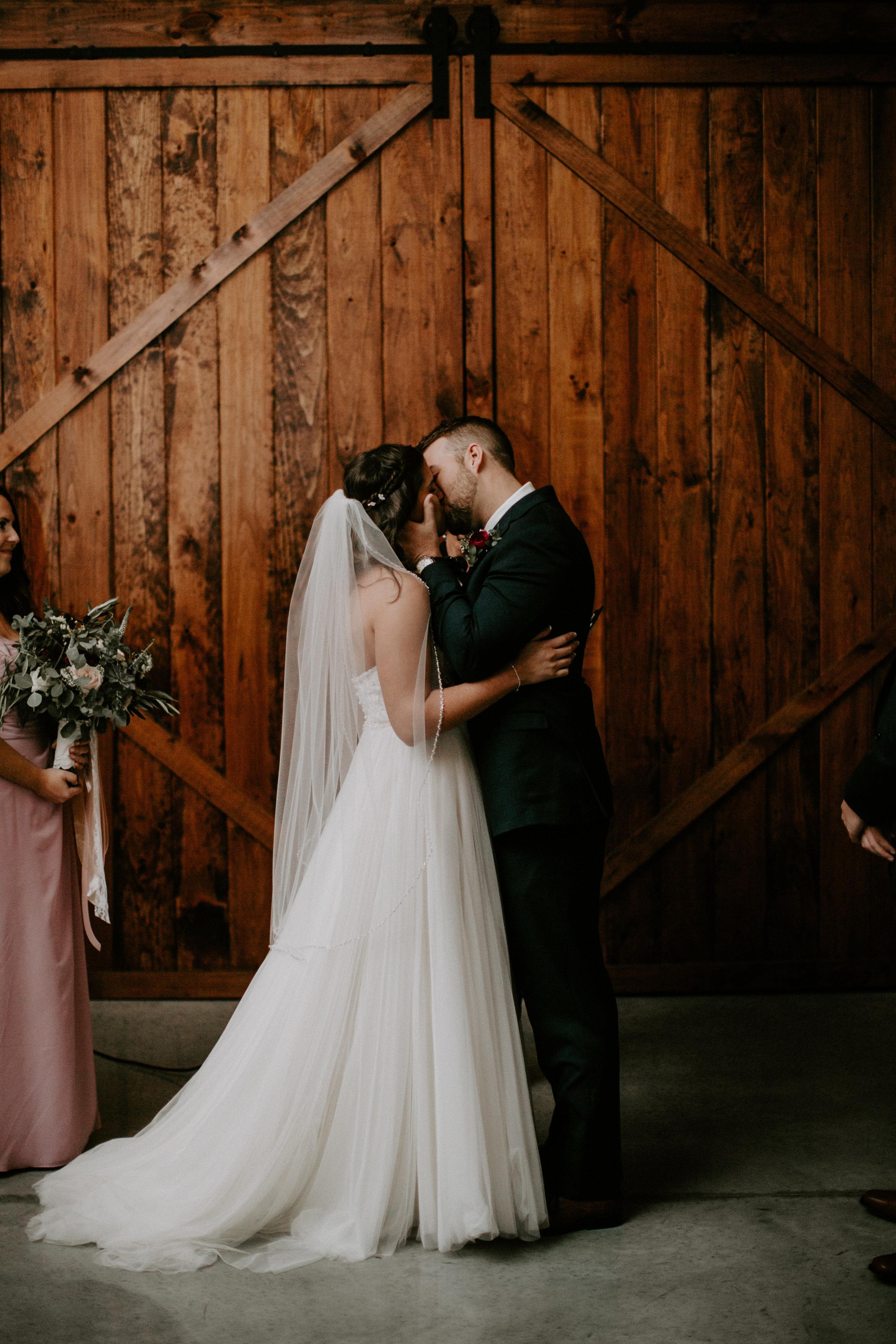 This rustic/industrial space is great if you prefer an indoor ceremony. Both heated and air conditioned. The ceiling is filled with magical twinkle lights and the large barn doors have shelves on either side, creating a perfect blank slate for candles and decor. A hidden bridal entrance behind closed drapes makes for a magical start to your ceremony. If you prefer an outdoor ceremony, we have that too but you always need a back up plan!