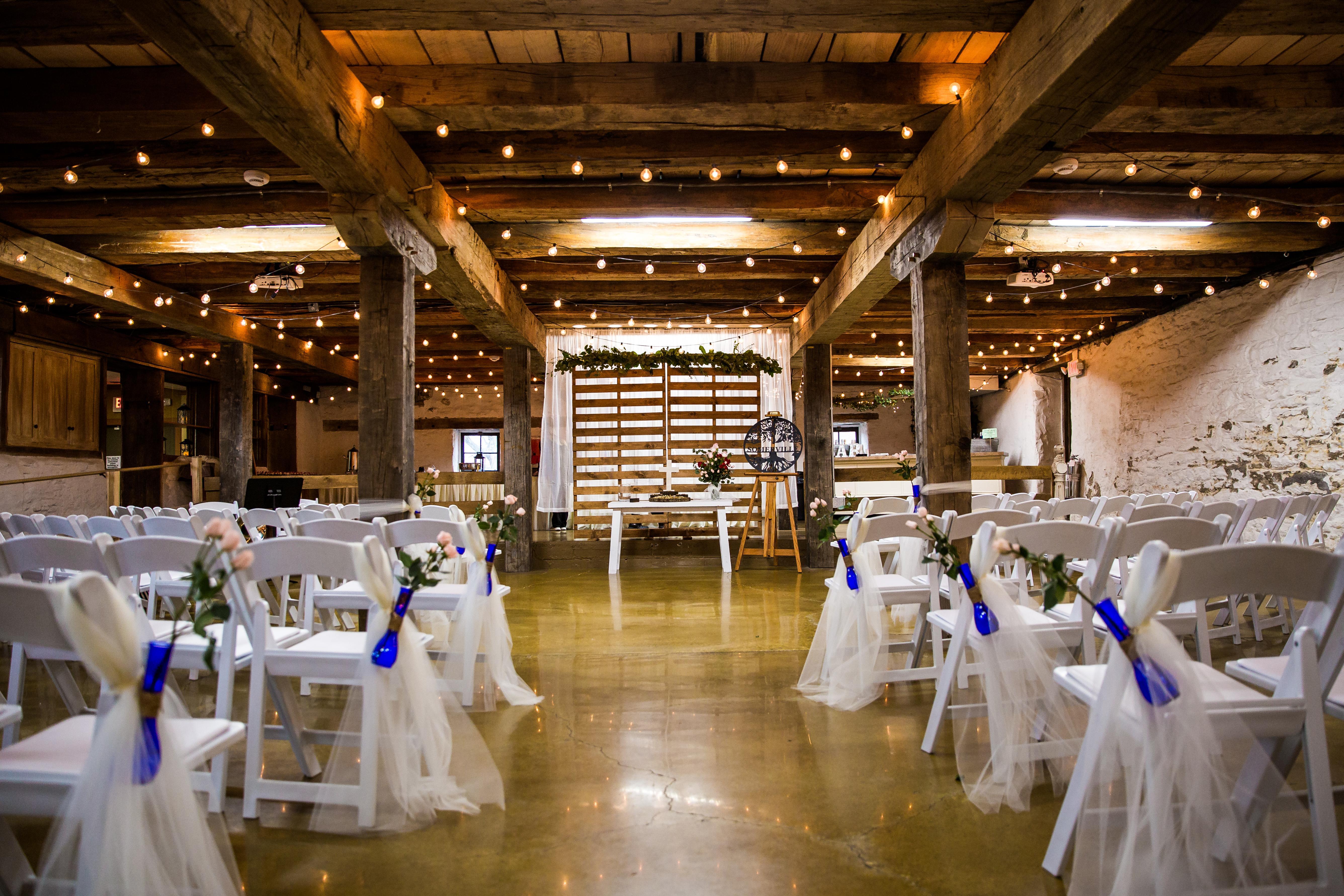The main hall of the barn is climate controlled and versatile for the needs and layout of your event. Bistro lighting is kept year-round.