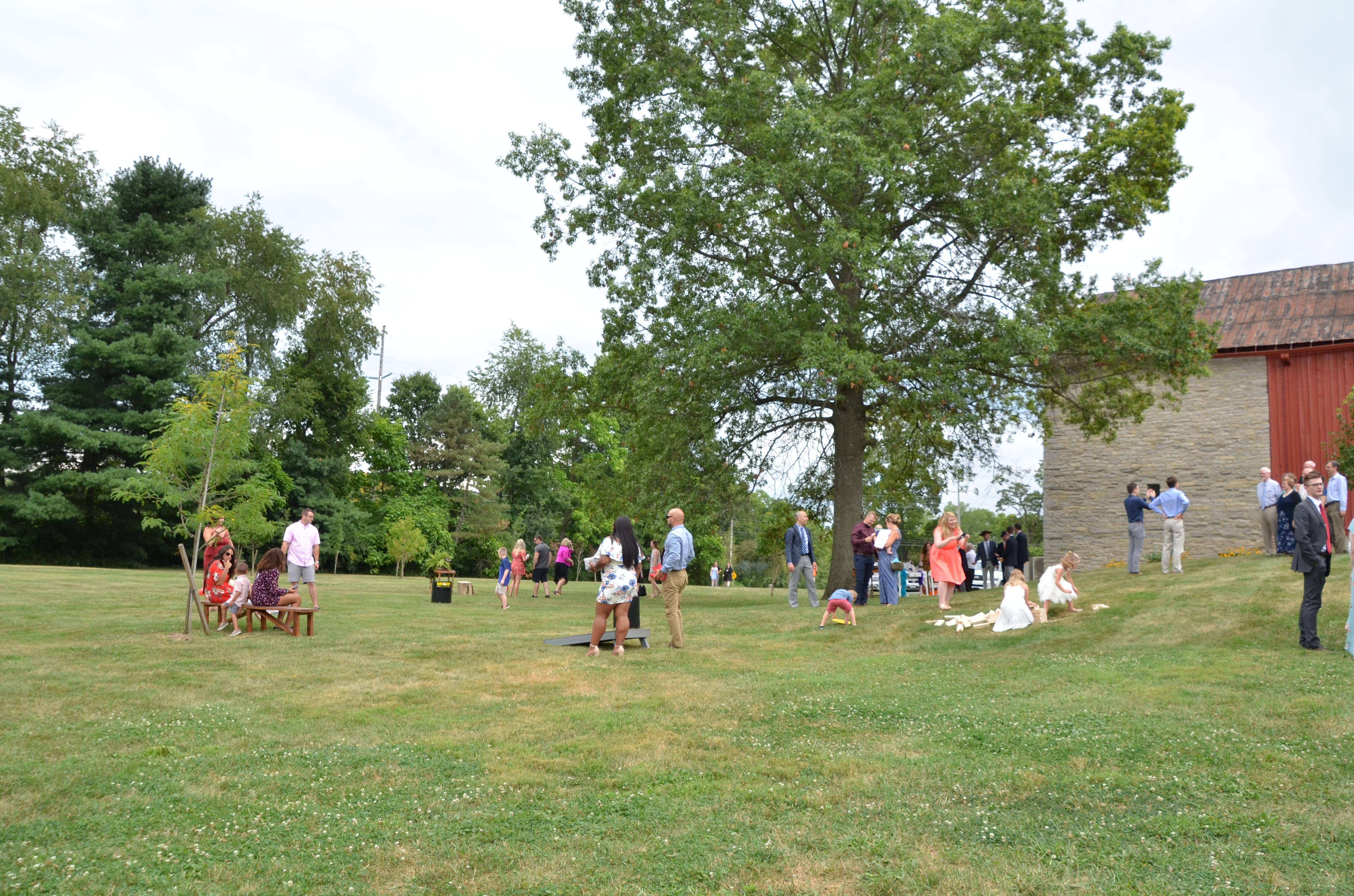 The backyard of the barn is central to the 6 acres of property. The willow tree at the bottom of the hill beside the creek is our most popular ceremony location. We also have a gazebo and an ohio wildflower garden for photos. The lit canopy is great for outdoor entertaining.