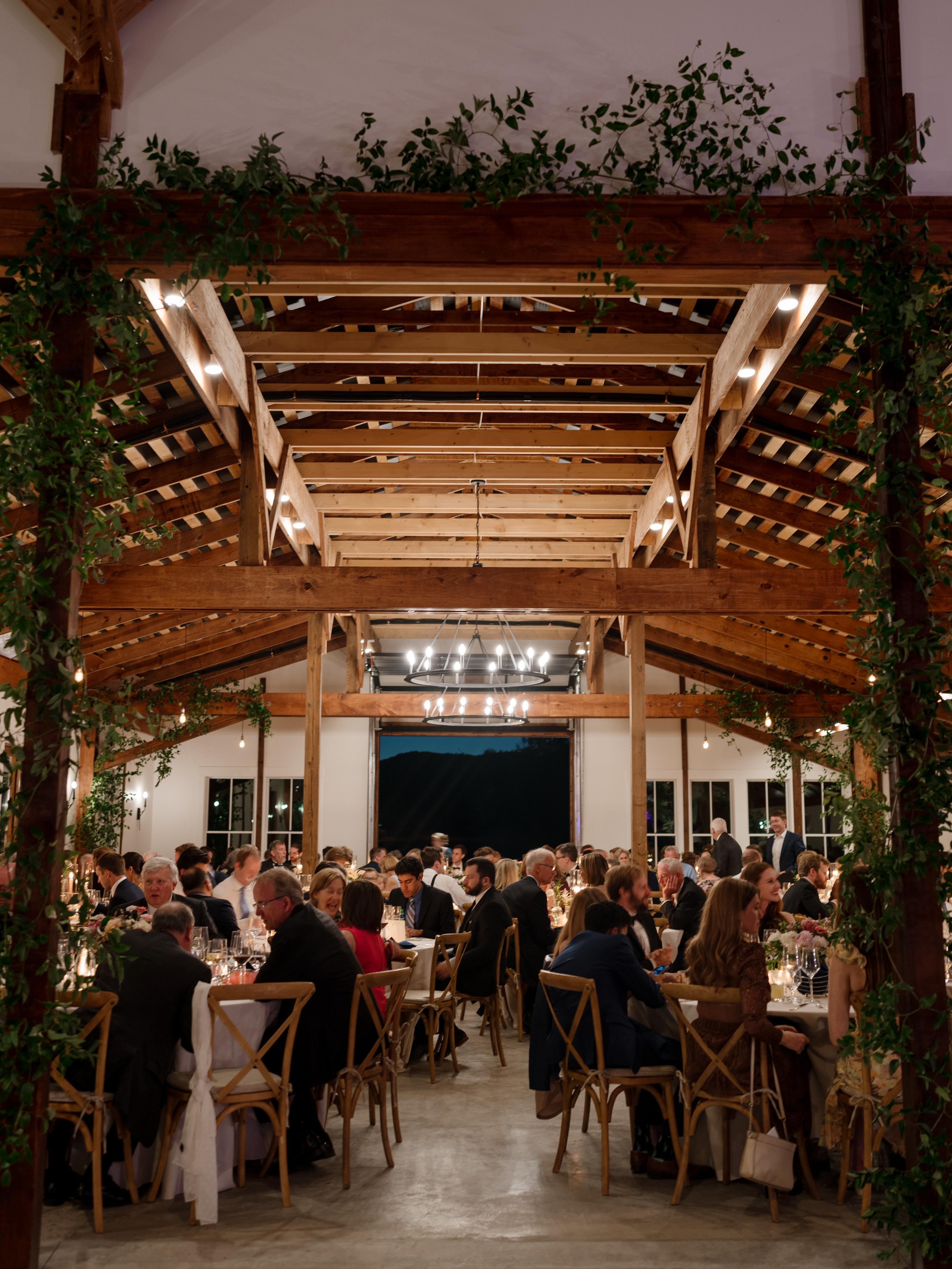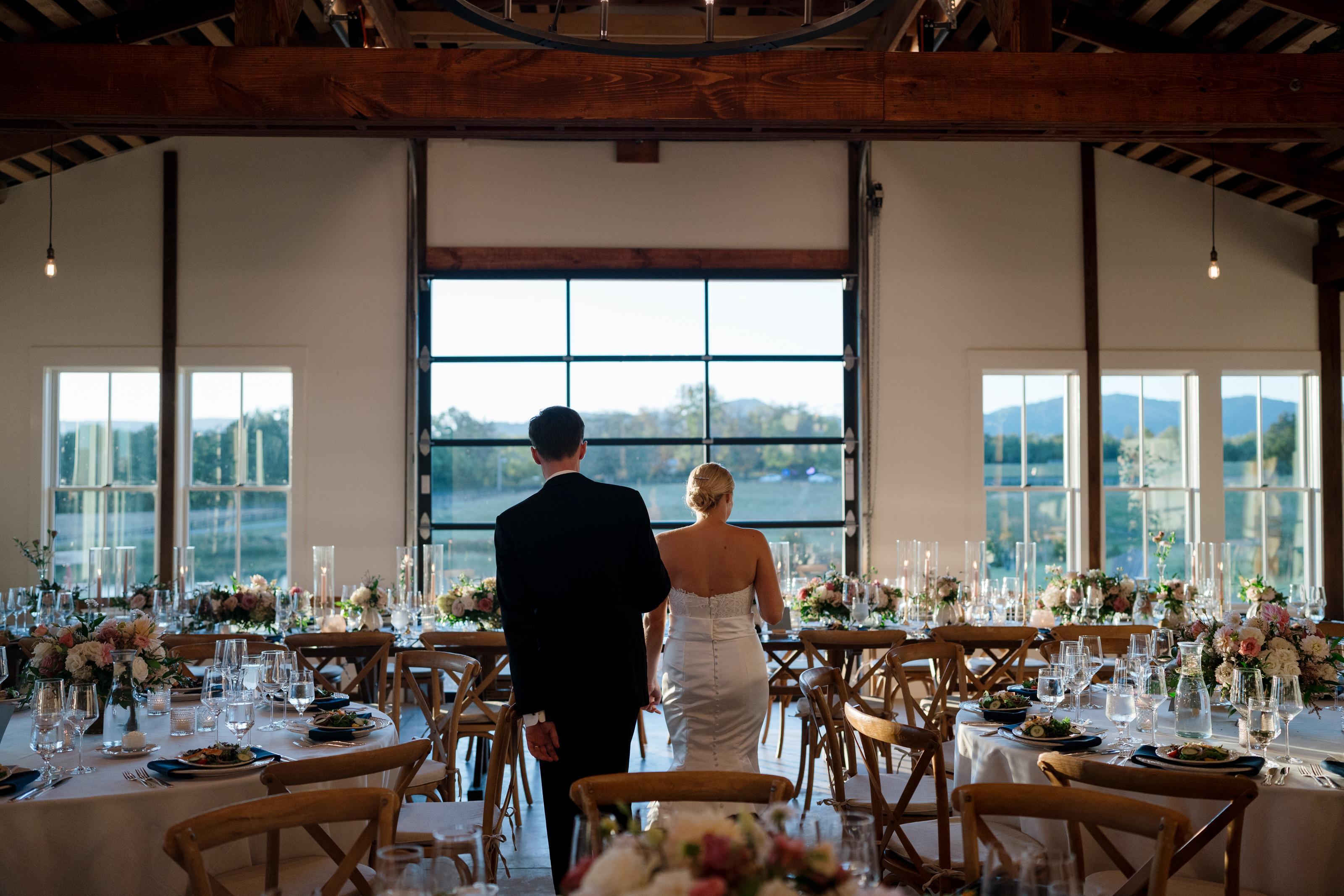 The North Hall sits 200 guests and is a magnificent location to gather for dinner or brunch. Open up the garage door or french doors to enjoy good weather, watch as the sun sets over the Blue Ridge, or take a break from dancing on the patio around a fire with your guests.