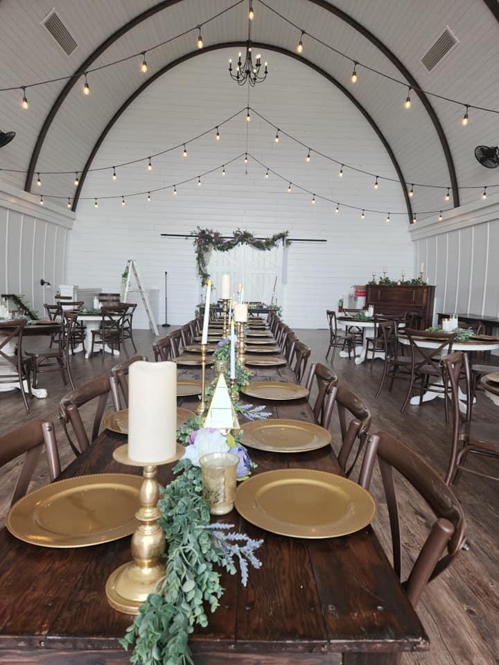 Perfect for Weddings and Receptions! Includes 10 round tables, 9 banquet tables, decorative buffet table, and 4 whiskey barrels