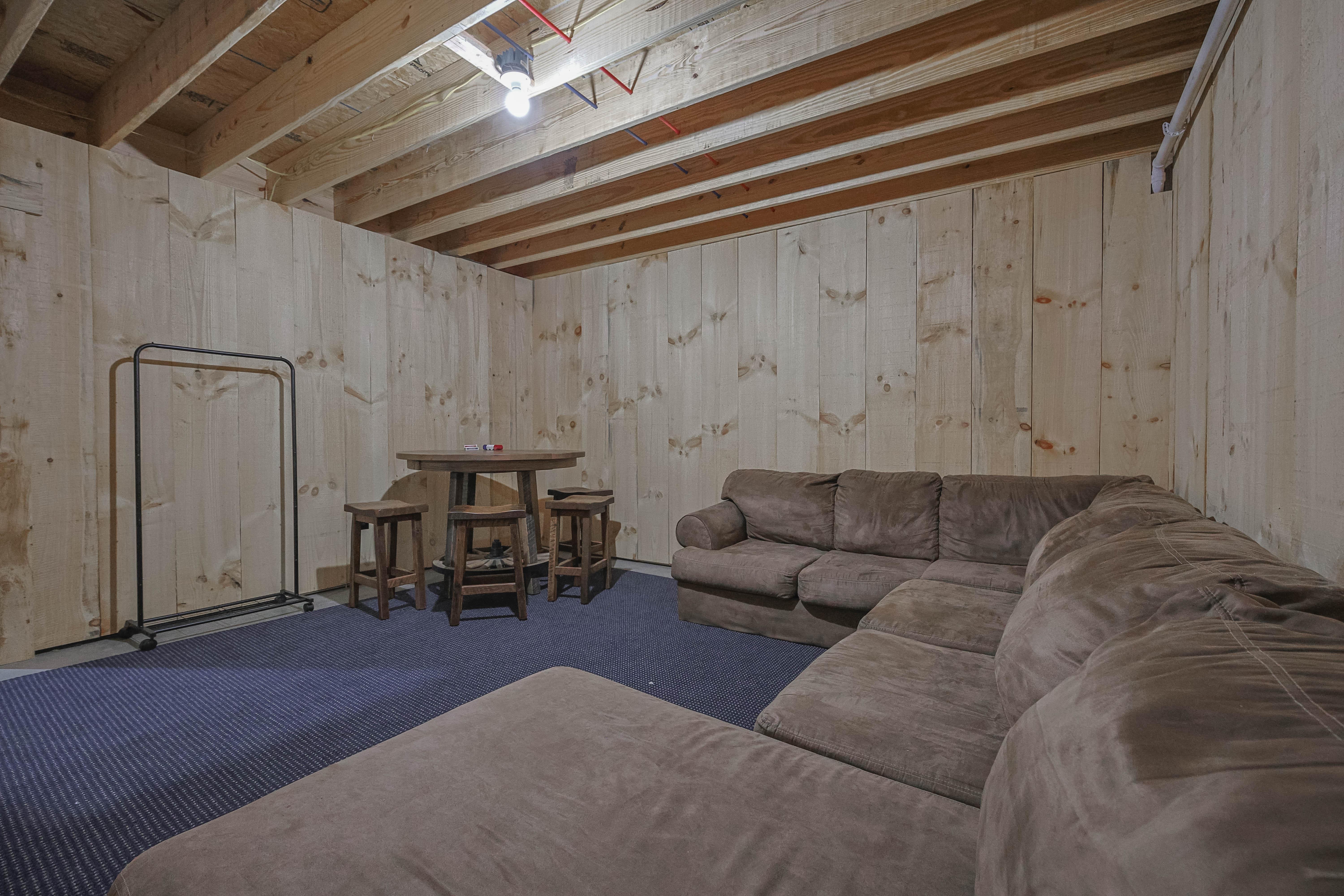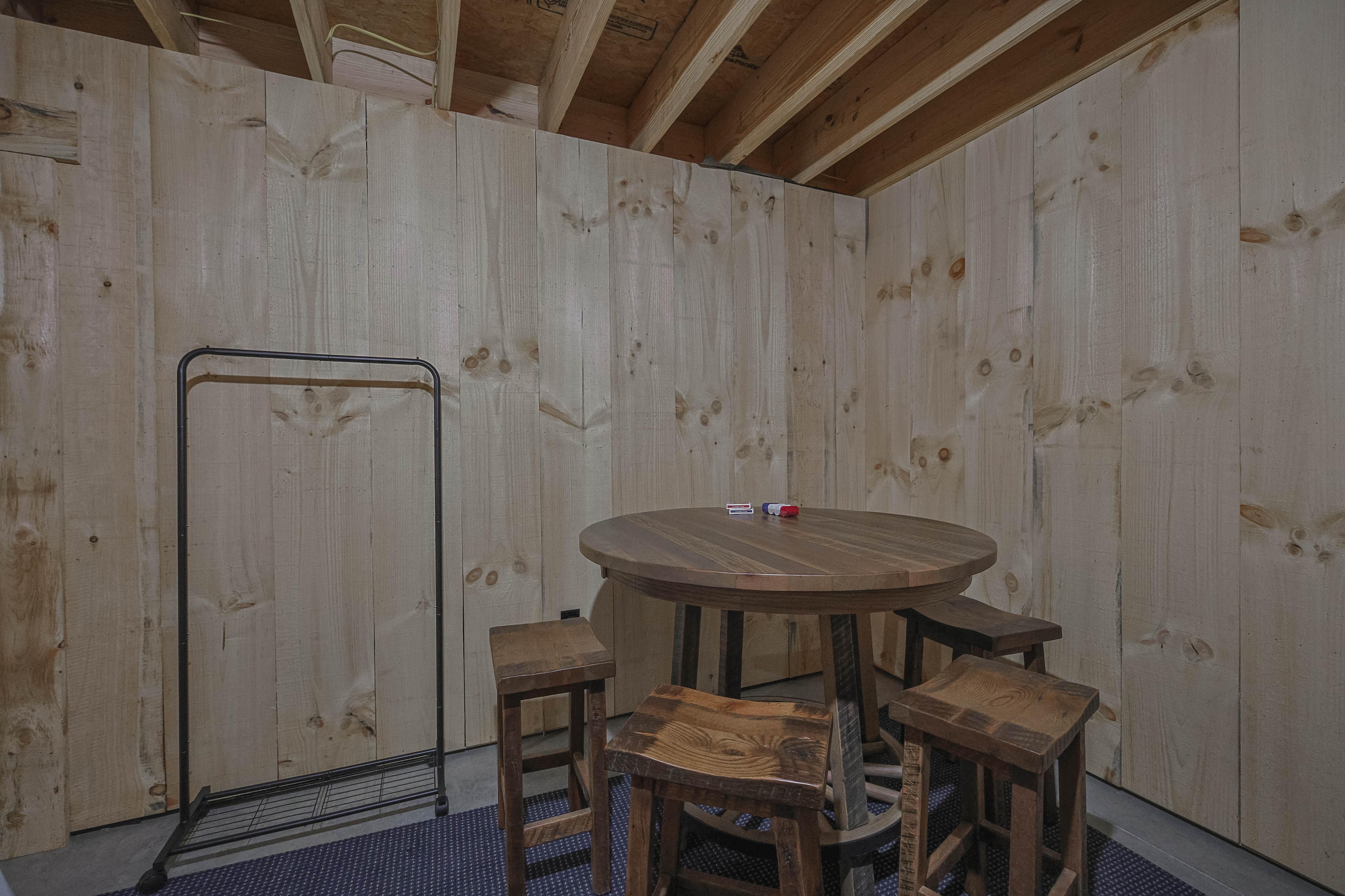 The room features full length mirror and ample seating space with a sectional sofa. There is also a game table for cards, or the groomsmen like to spend a lot of their time on the dock fishing.