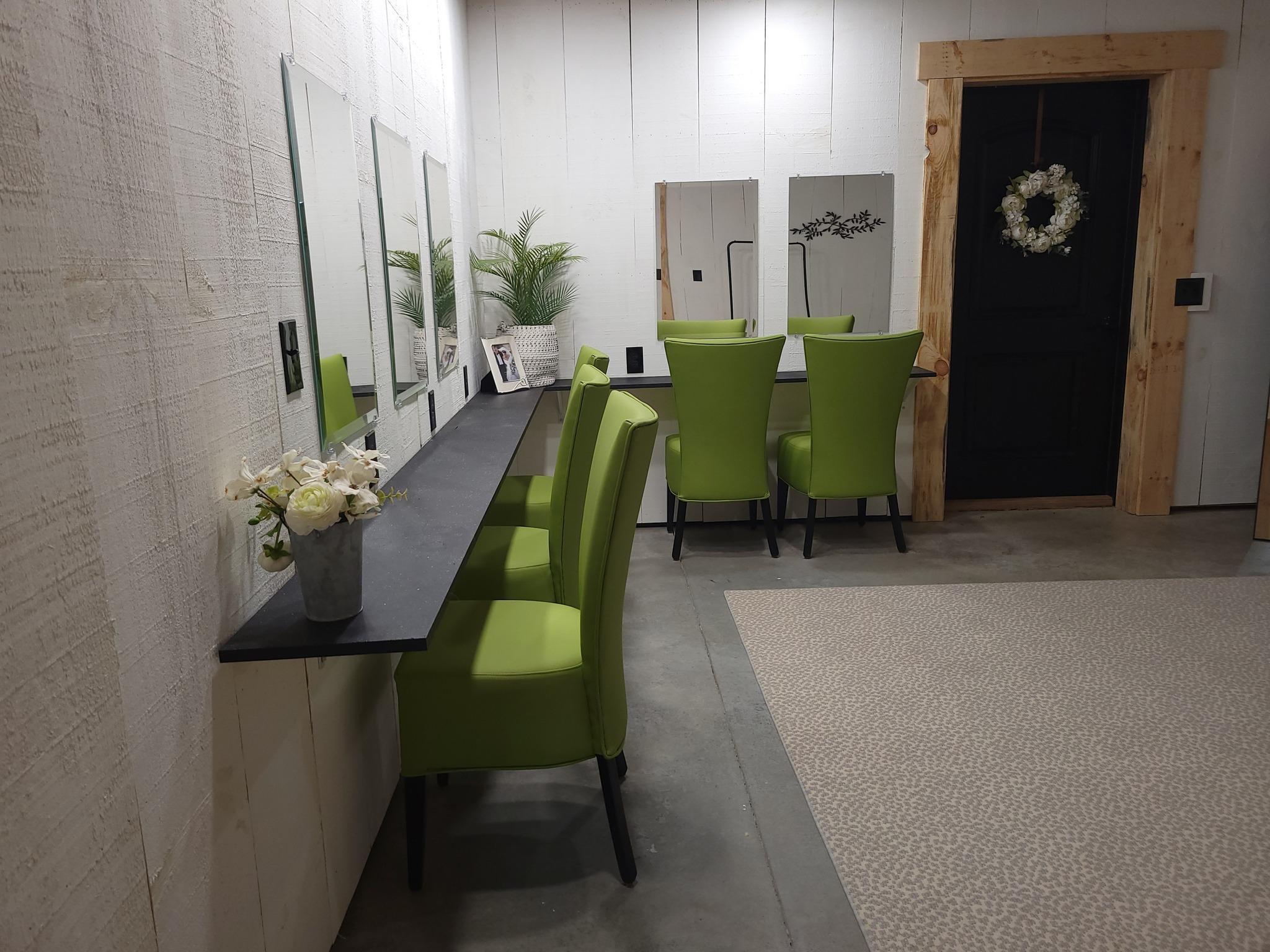 Our Bridal Suite has 5 hair and makeup stations with their own mirrors. There is also a couch for your comfort. The room is secured with your personal code to secure your belongings during your event. Hair and Makeup Artists are welcome!