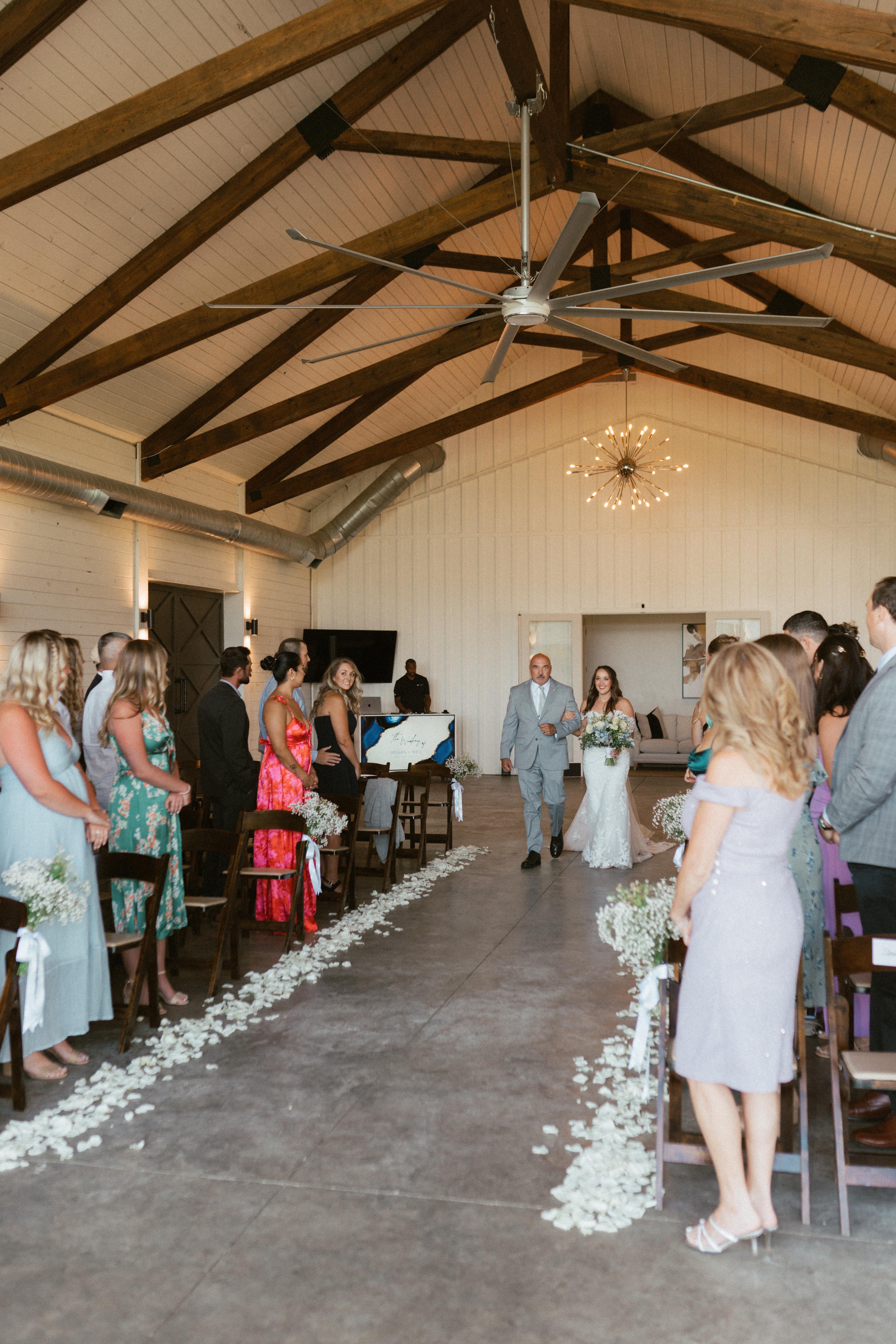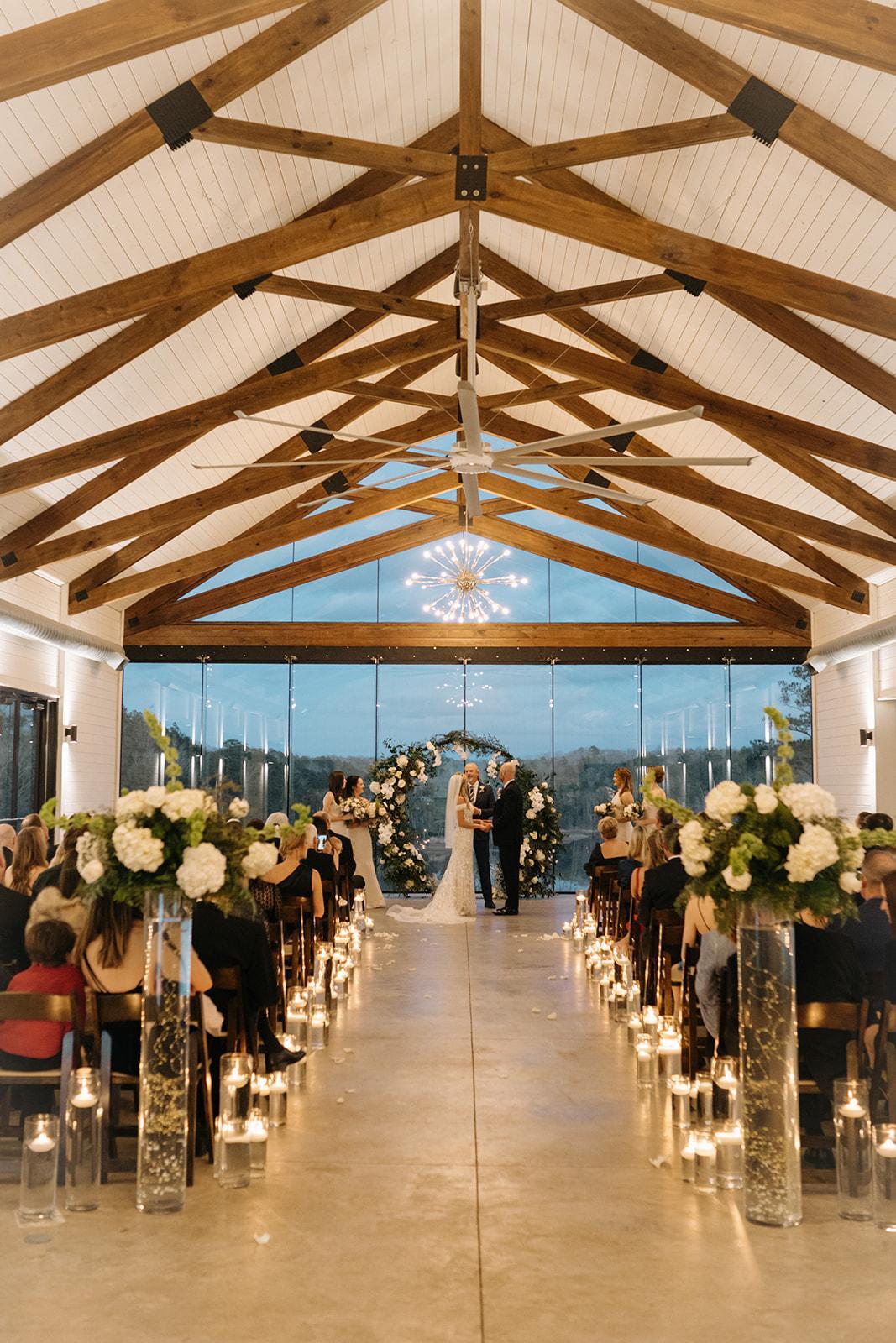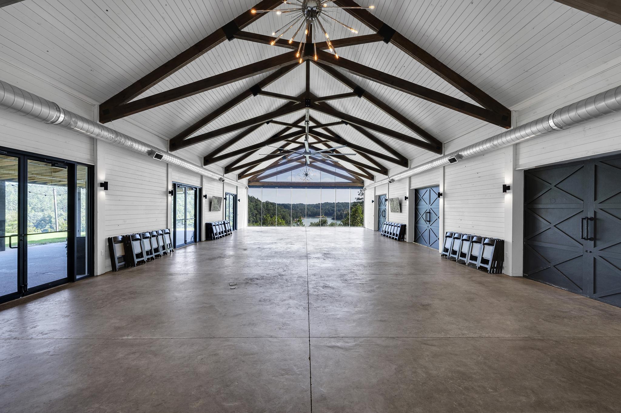 The Barn is a large indoor/outdoor facility that has unobstructed views of Smith Lake. The Barn has a bride and grooms suite, five bathrooms, a kitchen and 4,000 square feet of enclosed space, with a large outdoor event area that can seat 250. This space can accommodate up to 250 guests.