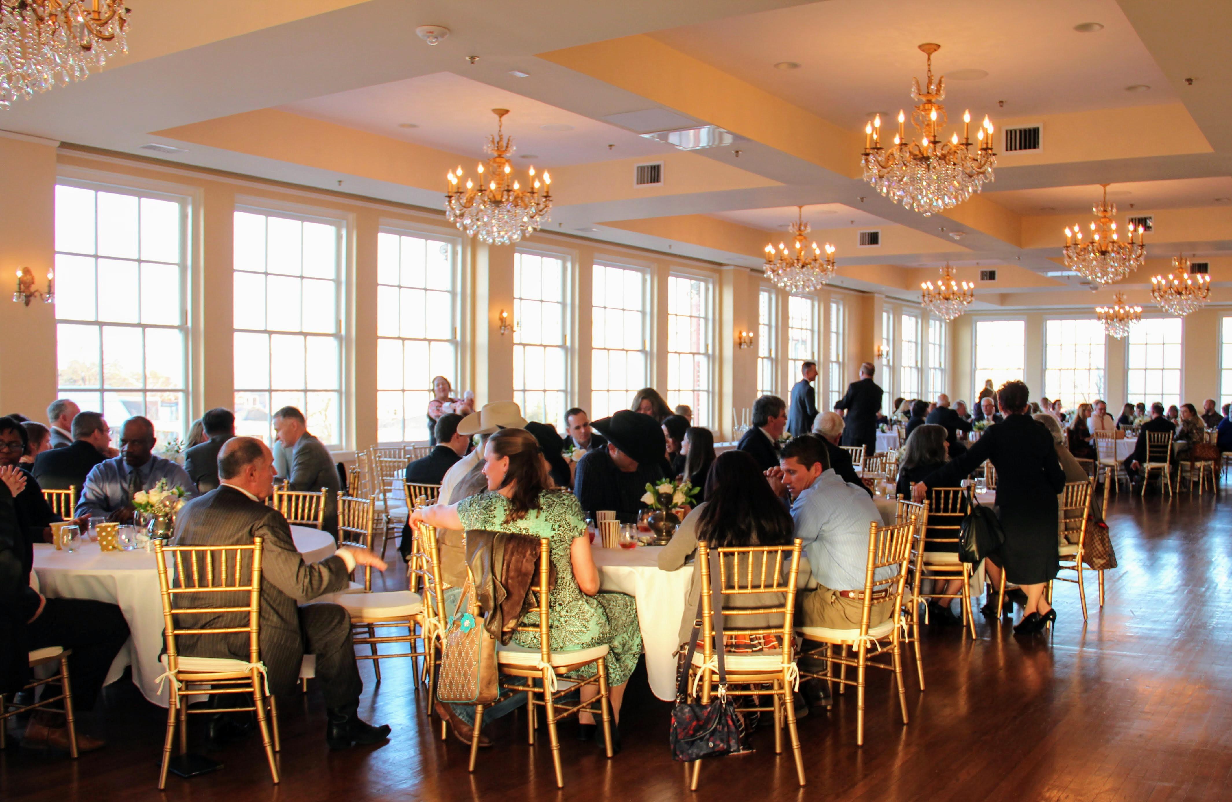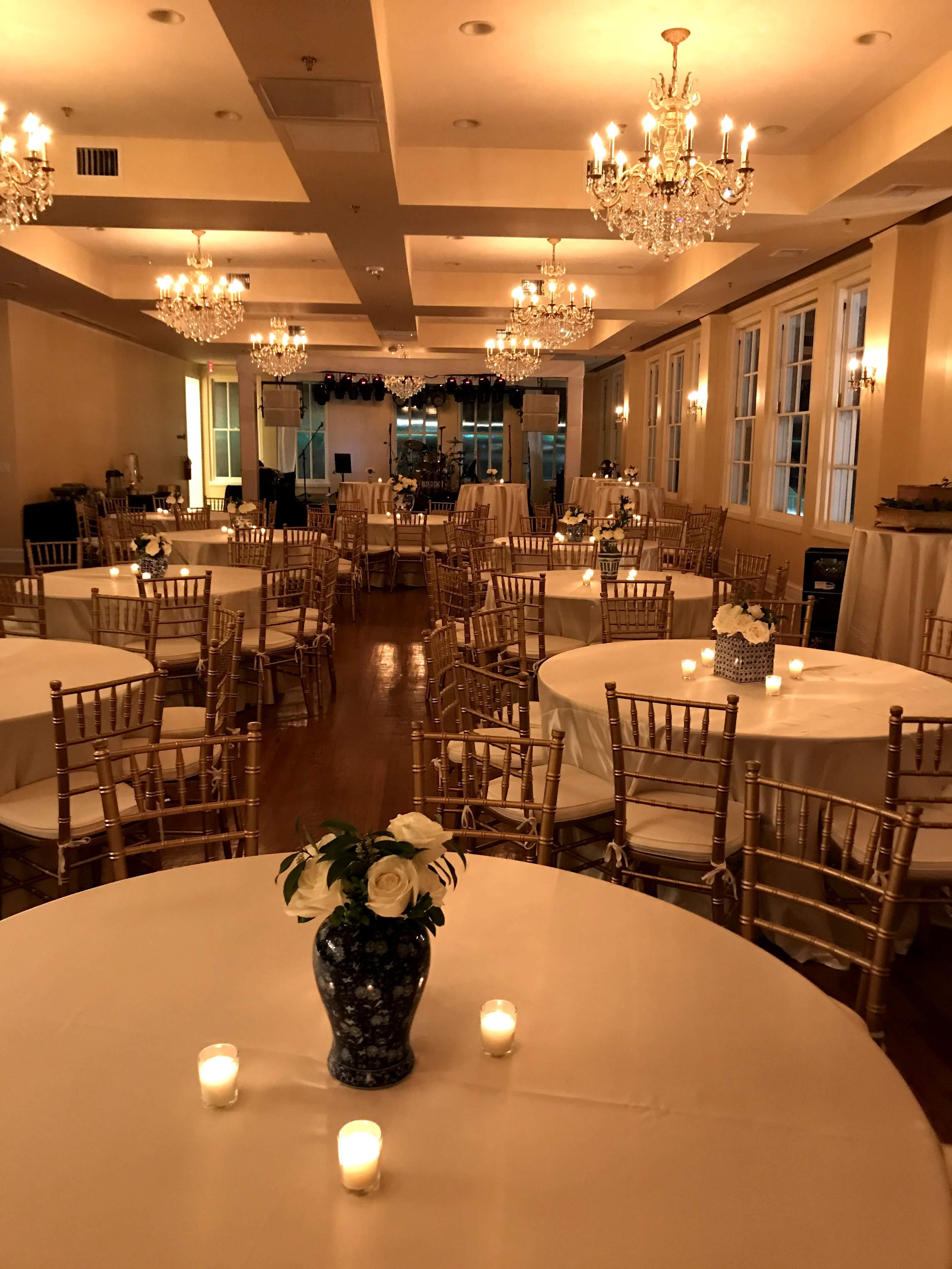 The Bullock Ballroom offers seating for up to 200 people and features beautiful Chiavari chairs, original 1925 wood floors, gold and crystal chandeliers and wall sconces, and four different types of tables including conference, banquet, 60 inch round tables, and cocktail tables for a unique layout. The ballroom also offers a dedicated niche for a band or DJ, state-of-the-art Audio/video system, catering kitchen, and elegant restrooms.